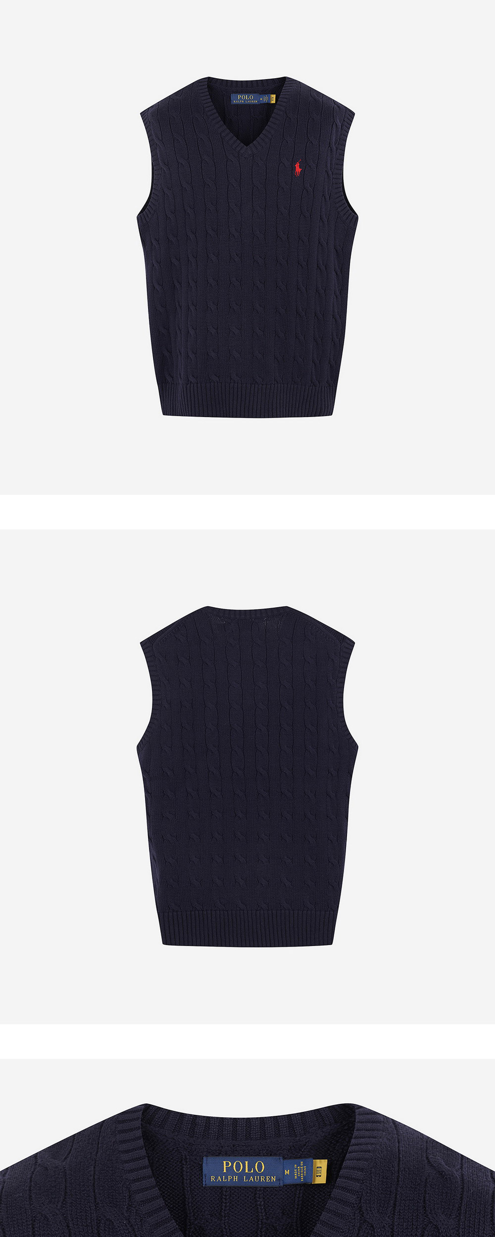 < KREAM은 랄프로렌 코리아 공식 파트너사로 모든 상품은 랄프로렌 코리아(유)에서 공급받은 정식 수입 제품입니다 > Polo의 가장 아이코닉한 디자인 디테일 두 가지인 독특한 질감의 케이블 니트 모티프와 시그니처 포니가 어우러지는 스웨터 베스트입니다. - 레귤러핏: 체스트가 더 넓으면서도 모던한 실루엣 - 리브 니트 암홀 - 리브 니트 헴 - 왼쪽 체스트에 시그니처 포니 자수