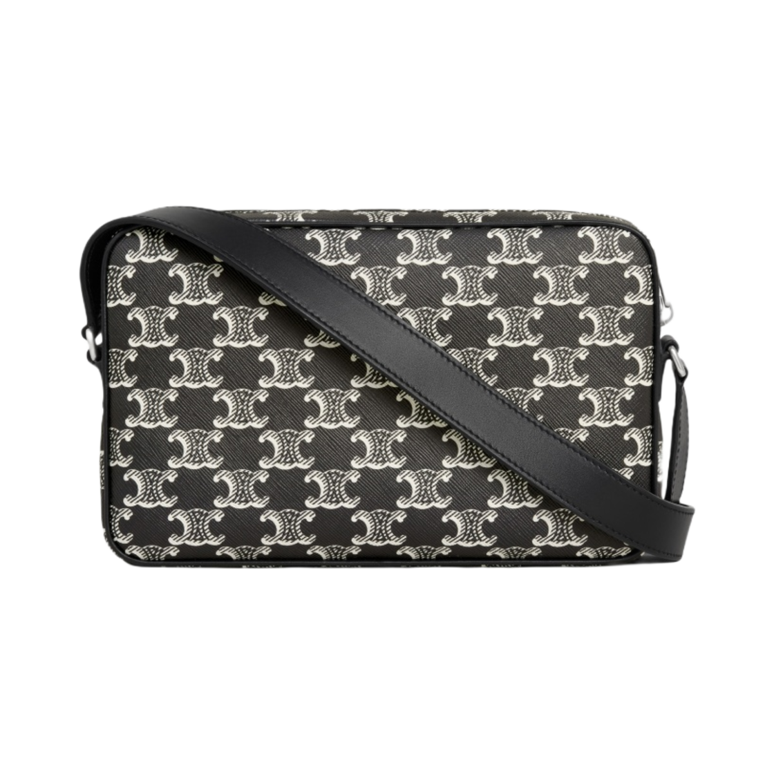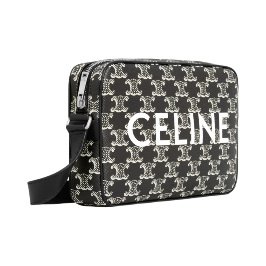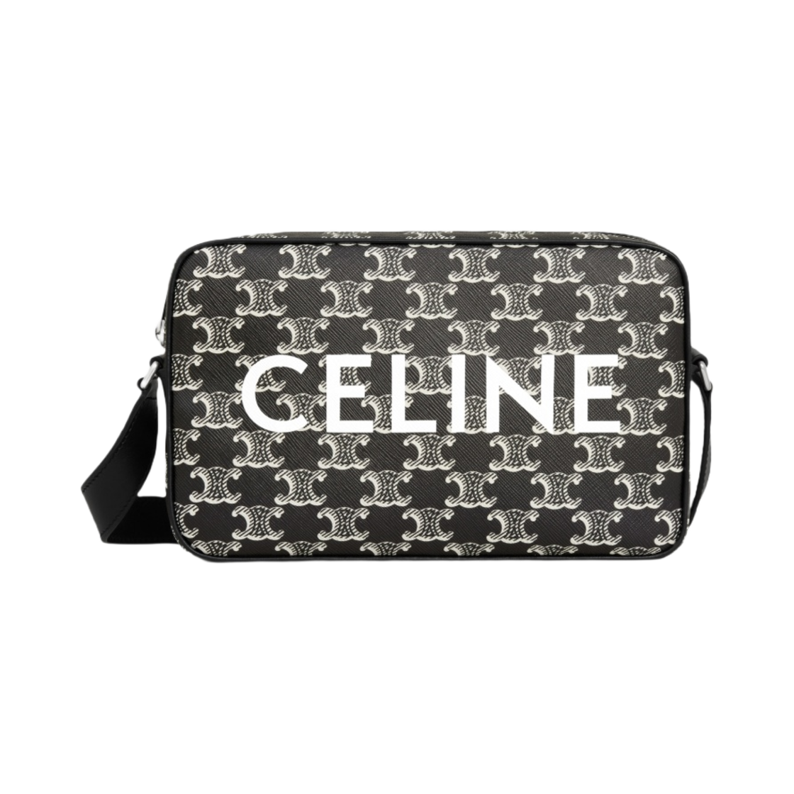 Celine Medium Messenger Bag in Triomphe Canvas Two-Tone with Celine Print Black White