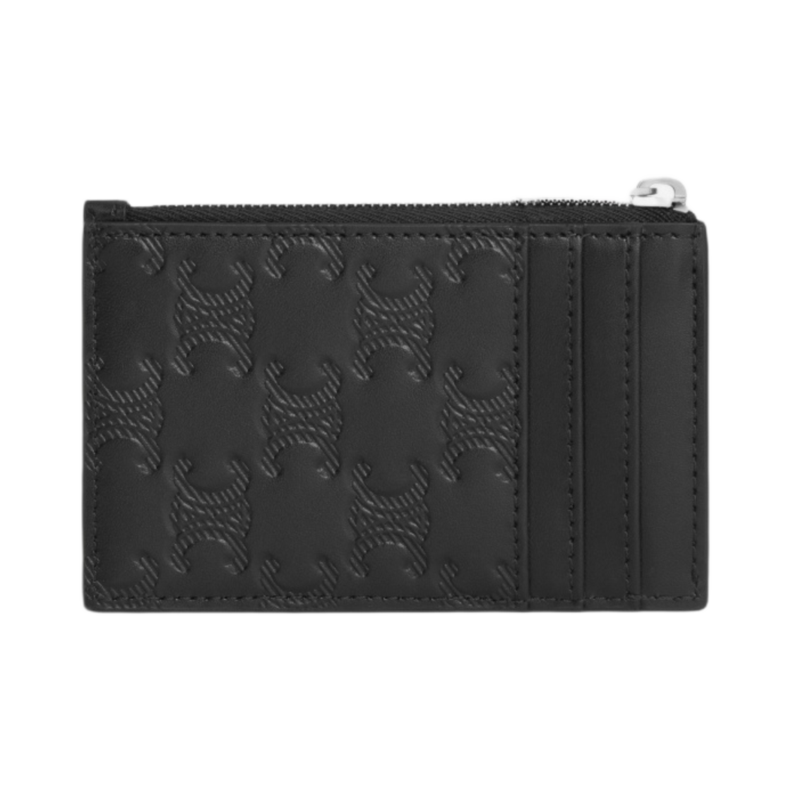 Celine Zipped Card Holder in Calfskin with Triomphe Embossed Black