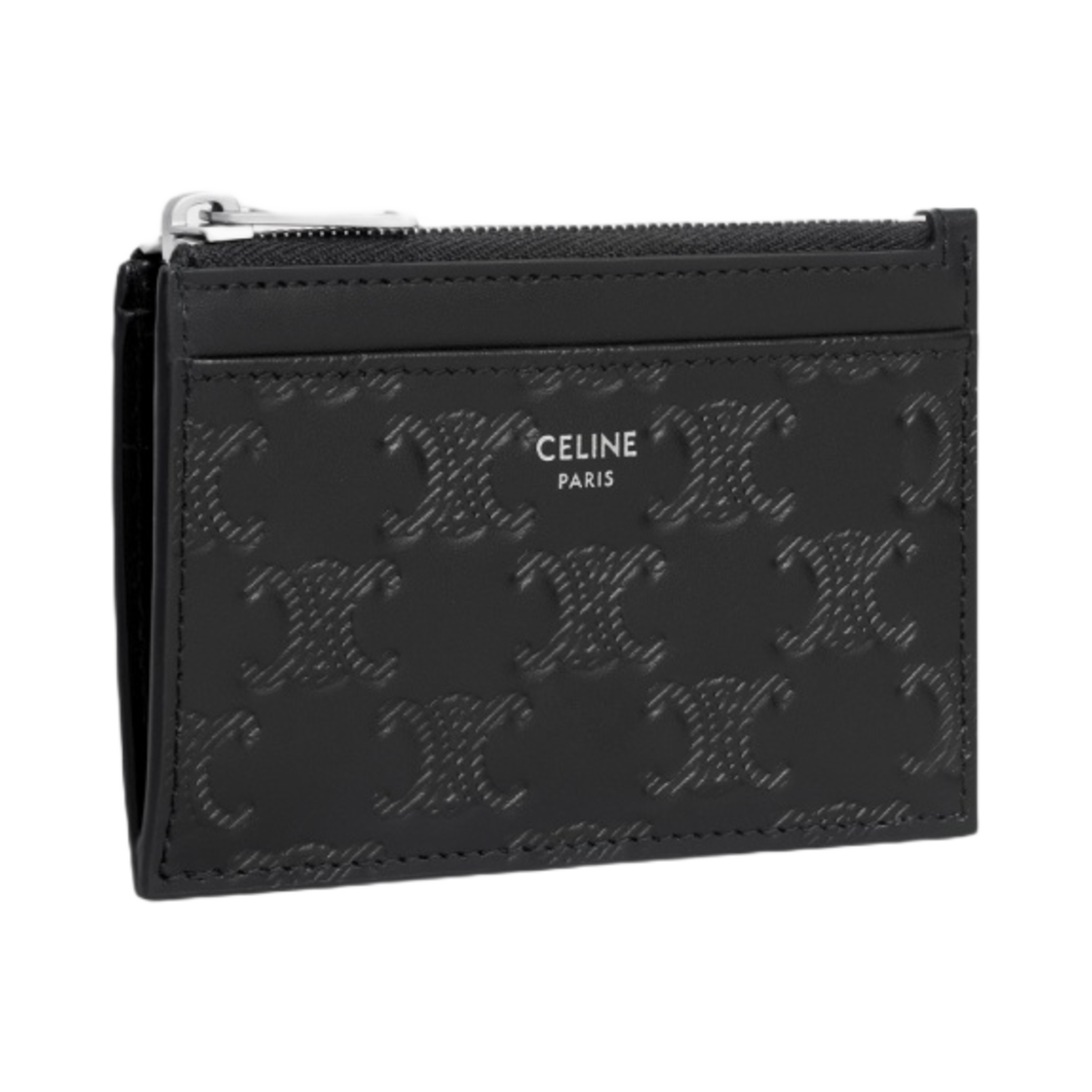 셀린느 트리옹프 엠보스드 카프스킨 지퍼 카드 홀더 블랙
