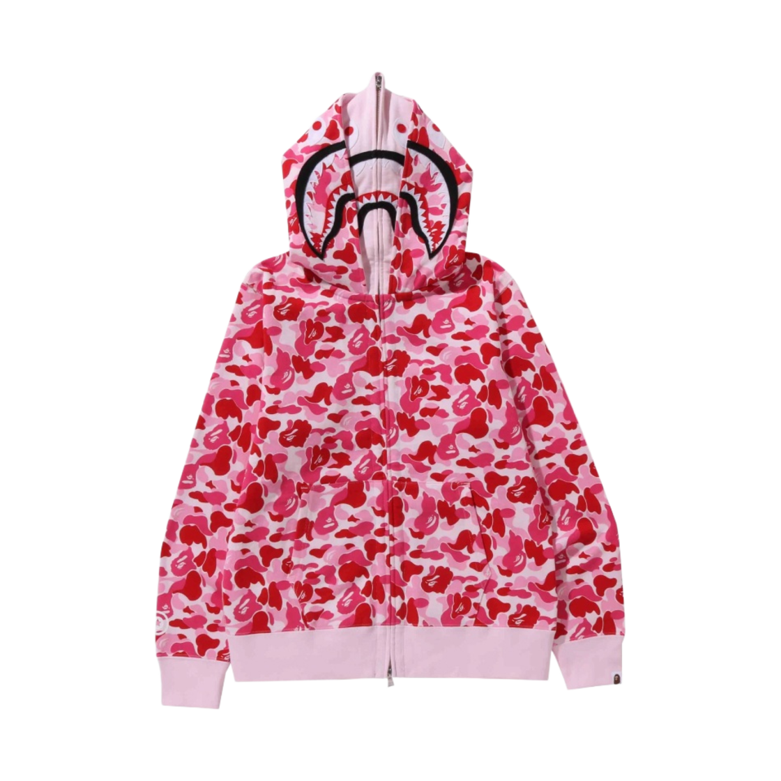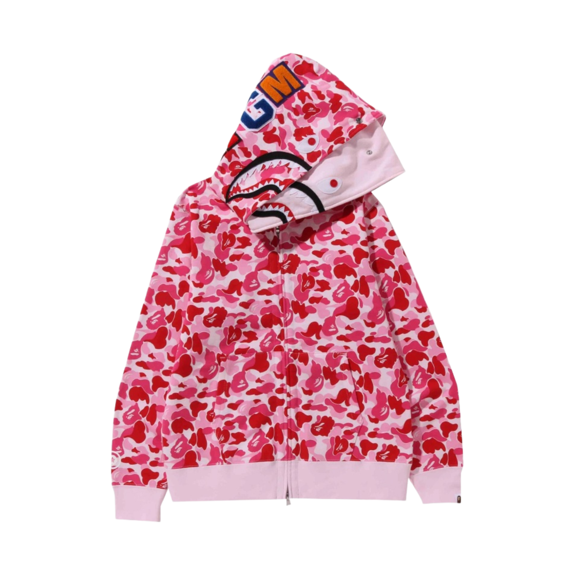 베이프 ABC 카모 더블 샤크 풀 집 후드 핑크