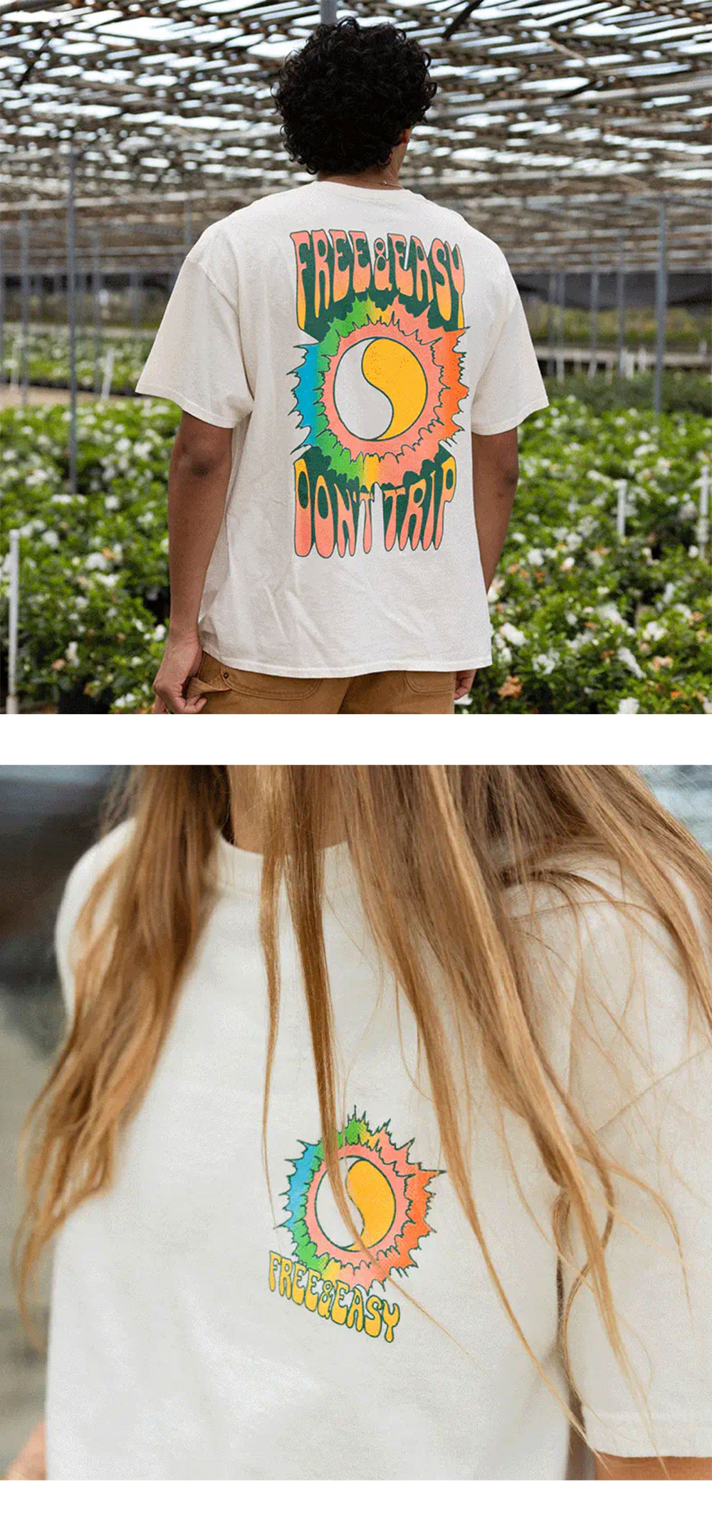 - 100% 면 소재 - 이중 스티치 디테일 - 빈티지 워싱 (원단 소재 특성상 표면이 일어나 보일 수 있습니다) - 세탁 시 줄어듦 방지 사전 축소 처리 - 로스앤젤레스에서 수작업으로 프린팅 - 스탠다드 사이즈 - 편안한 핏을 원할 시 한 치수 크게 선택