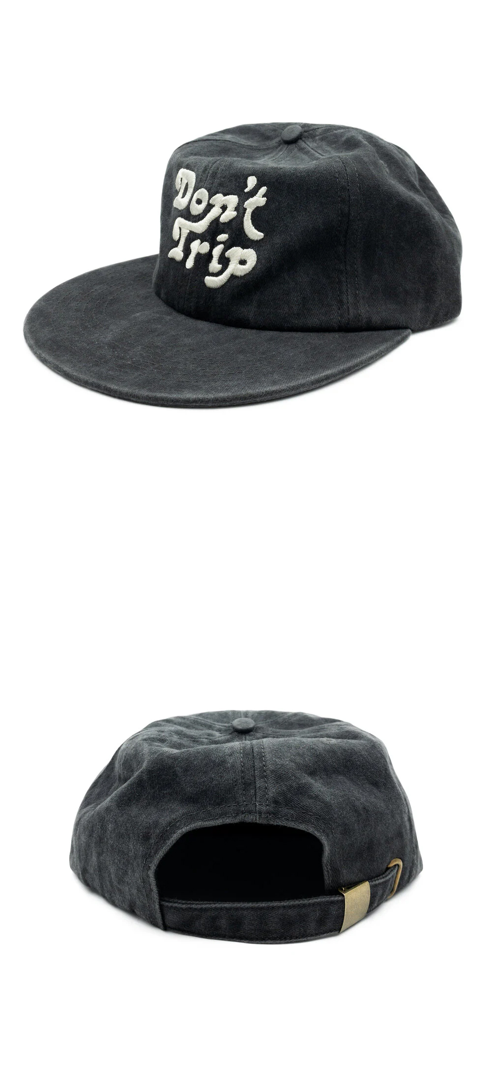 • 6 패널 캡 • 100%코튼 트윌 소재 • 빈티지 워싱 • 구부릴 수 있는 플랫한 챙 • 전면에 커스텀 그래픽 자수