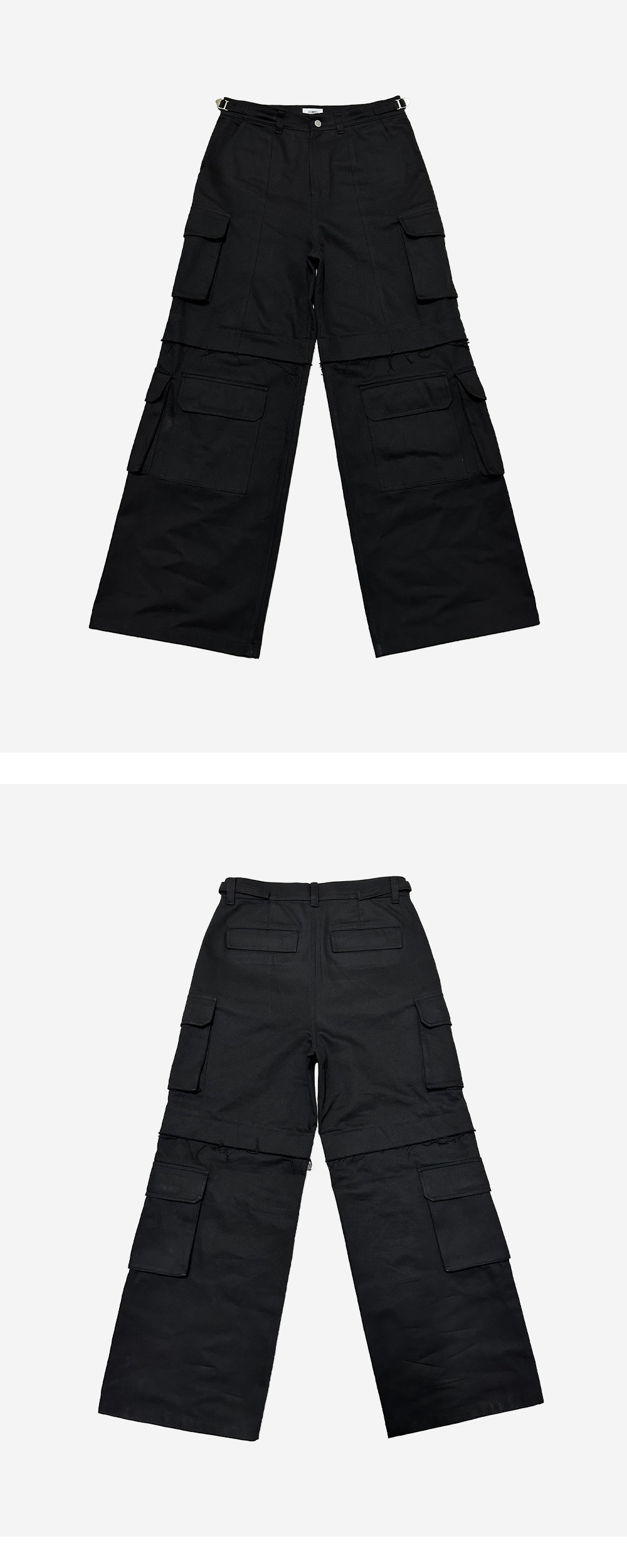 오엠오 레이어드 카고 배기 팬츠 블랙