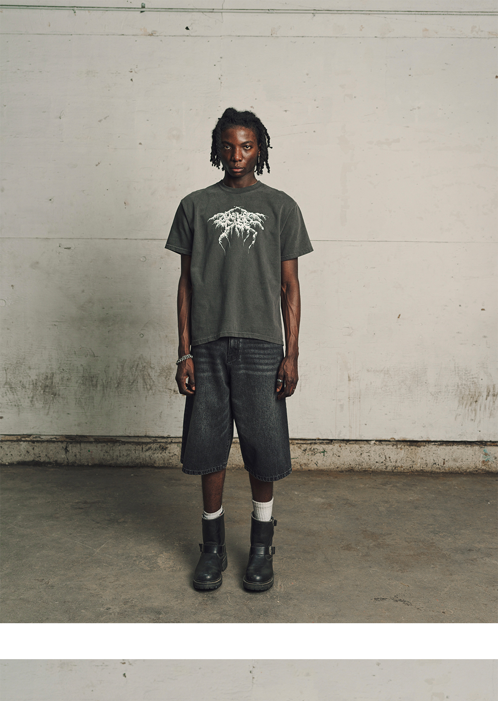 전면과 후면의 그래픽 프린트가 특징인 바스켓케이스의 메탈 V1 티셔츠를 소개합니다. - 전면과 후면에 그래픽 프린트 - 크루넥 - 직선형 밑단 - 100% 면 *모델 1 신체 스펙 : 185cm / 착용 사이즈 : L