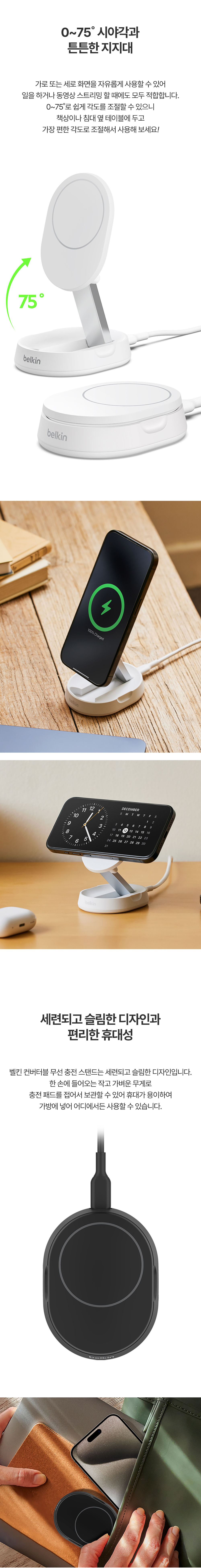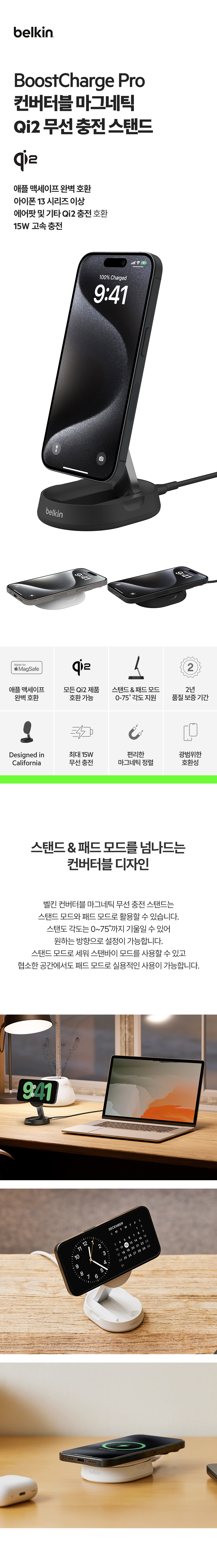 벨킨 Qi2 컨버터블 마그네틱 무선 충전 스탠드 WIA008bt 블랙