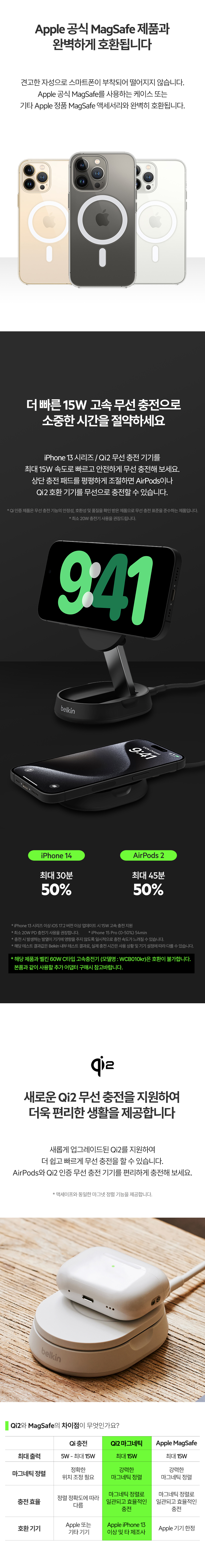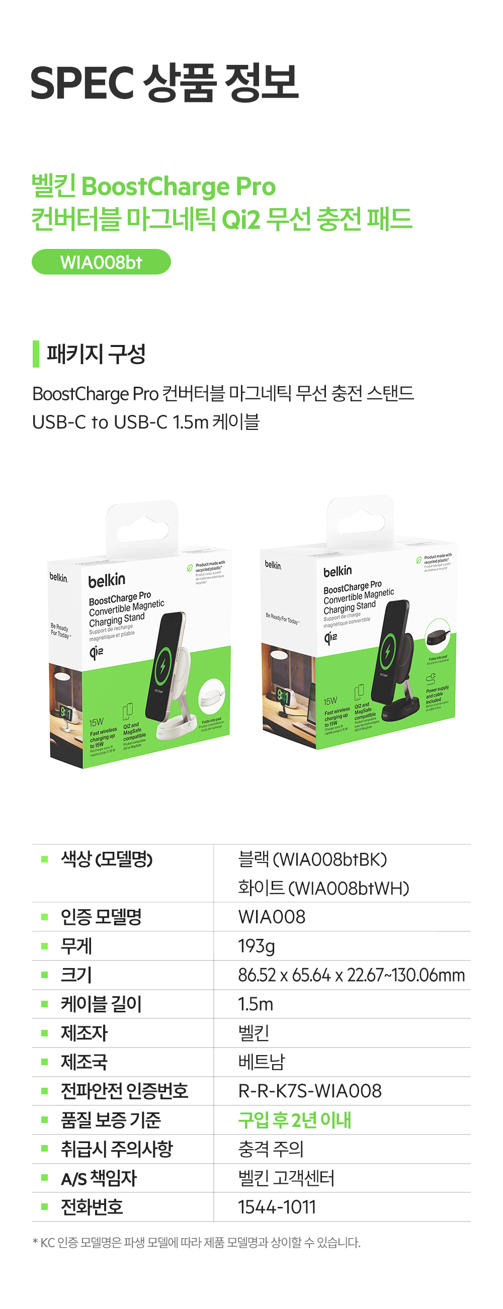 벨킨 Qi2 컨버터블 마그네틱 무선 충전 스탠드 WIA008bt 화이트