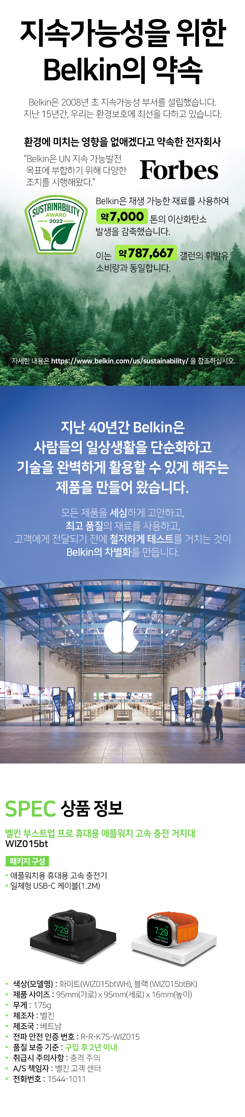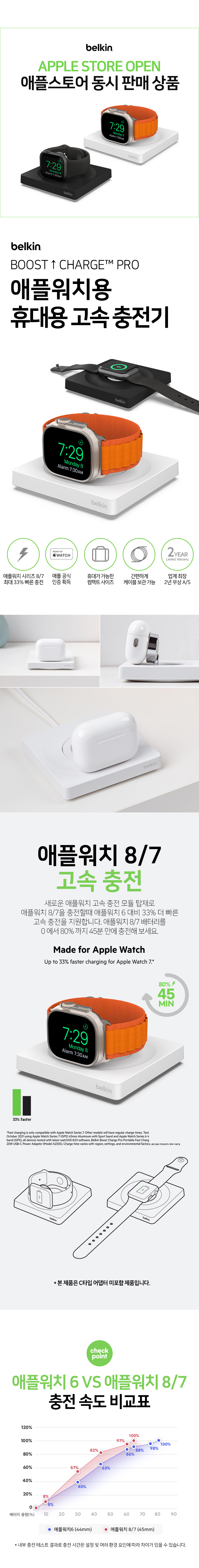벨킨 부스트업 프로 애플워치 휴대용 고속 충전기 WIZ015bt 화이트