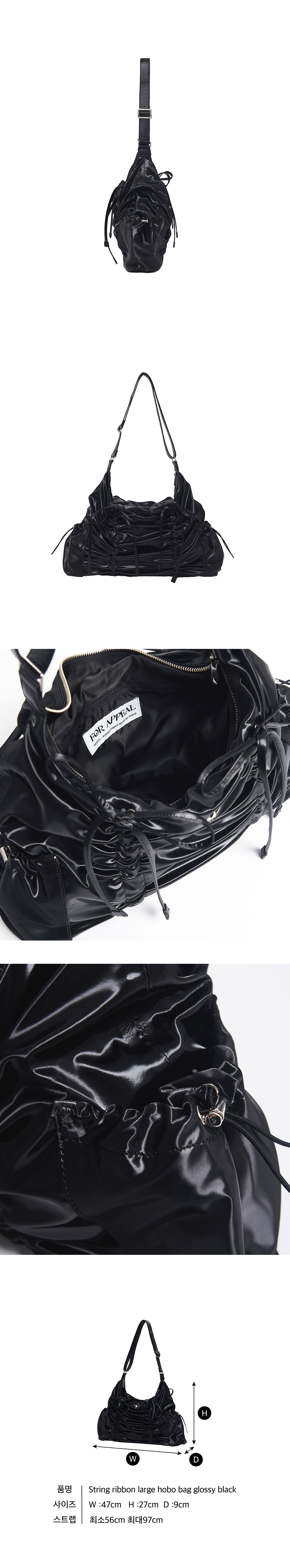 For Appeal String Ribbon Large Hobo Bag Glossy Black