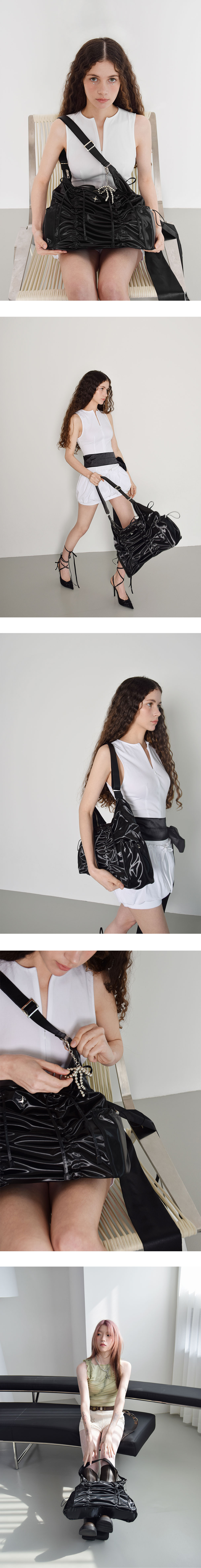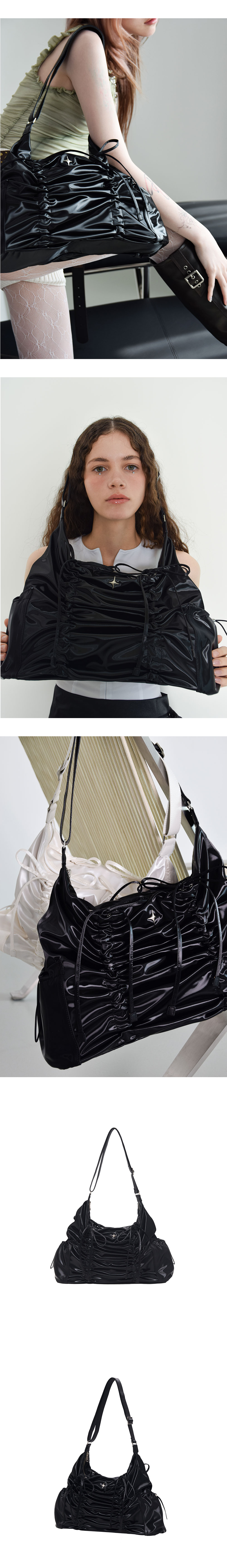 포어필 스트링 리본 라지 호보백 글로시 블랙