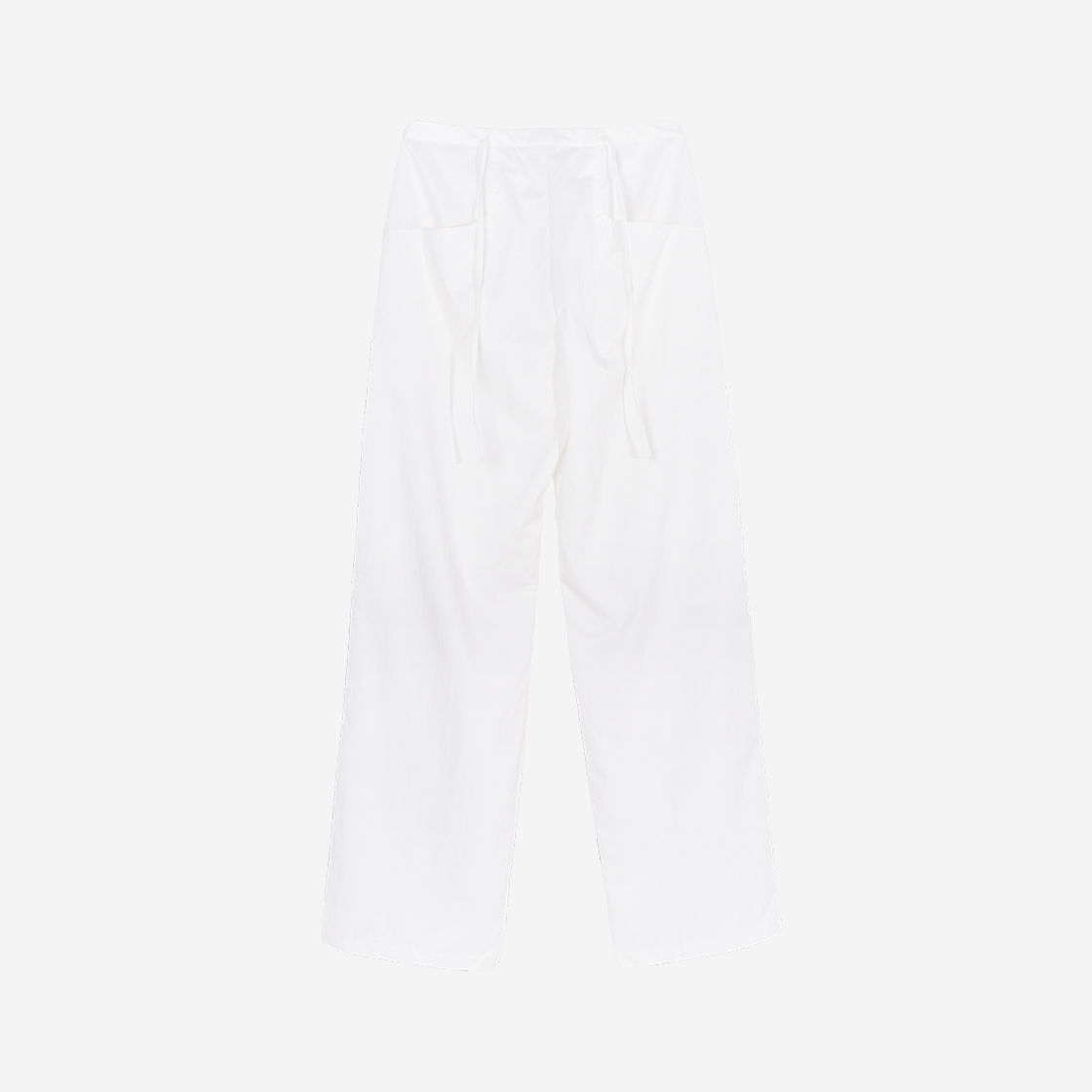 - 전면 미니포켓 디테일의 팬츠<br><br> - 적당한 광택의 원단감<br> - 허리 사이드 리본 디테일<br> - 전면 4개의 포켓<br> - 후면 2개의 포켓<br> - 편안한 착용감의 레귤러핏의 실루엣<br><br> * Shell : 60% Nylon, 40% Polyester<br><br> * Made in Korea<br><br> * Model - 173cm / 2 Size<br>