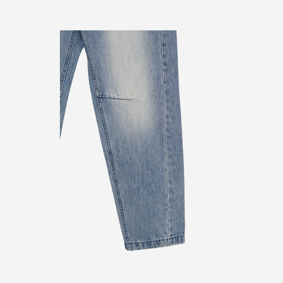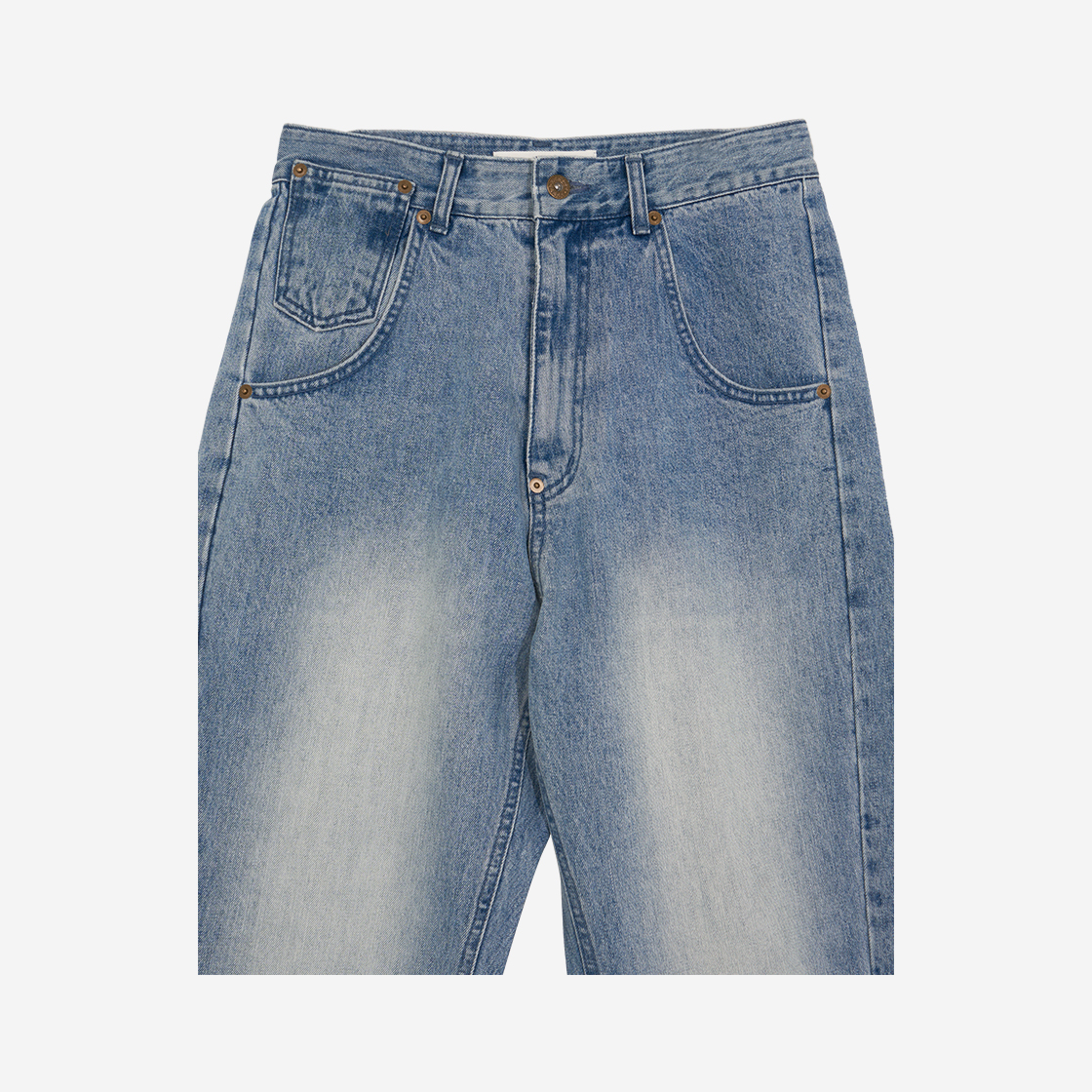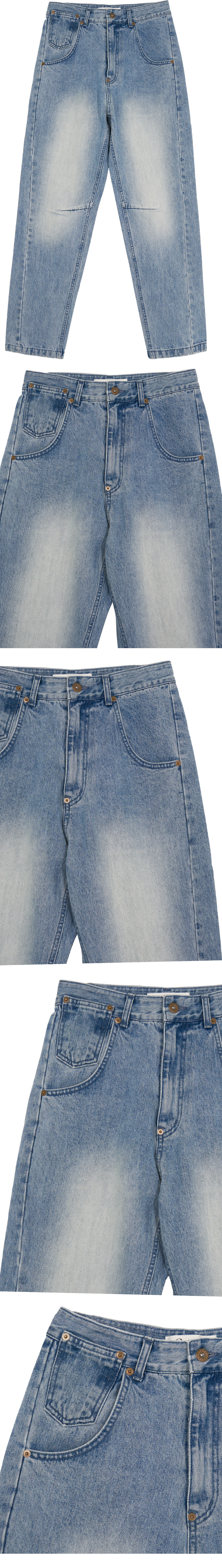 - 빈티지한 워싱감의 데님팬츠<br><br> - 전면 오비 하단 리벳 디테일<br> - 전면 코인포켓 디테일<br> - 후면 상단 비죠 디테일<br> - 편안한 착용감의 루즈핏의 실루엣<br><br> * Shell : 100% Cotton<br><br> * Made in Korea<br><br> * Model - 174cm / 2 Size<br>