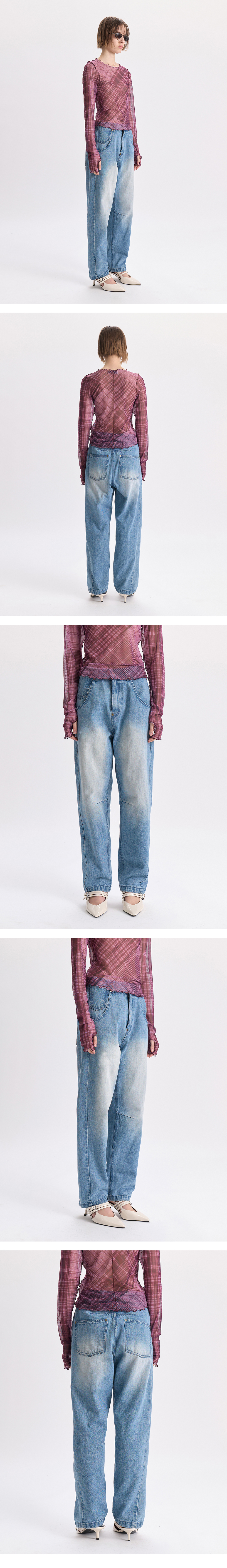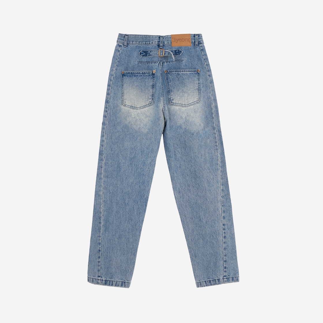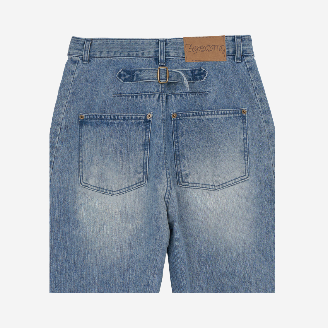 - 빈티지한 워싱감의 데님팬츠<br><br> - 전면 오비 하단 리벳 디테일<br> - 전면 코인포켓 디테일<br> - 후면 상단 비죠 디테일<br> - 편안한 착용감의 루즈핏의 실루엣<br><br> * Shell : 100% Cotton<br><br> * Made in Korea<br><br> * Model - 174cm / 2 Size<br>
