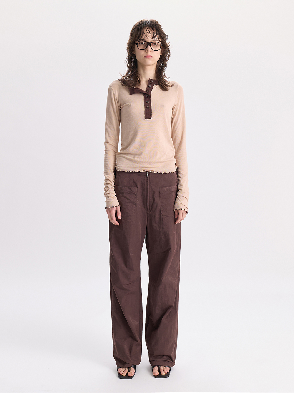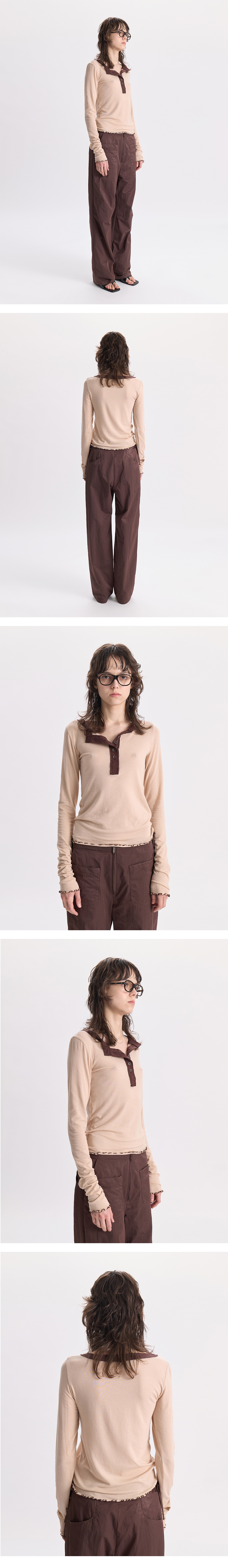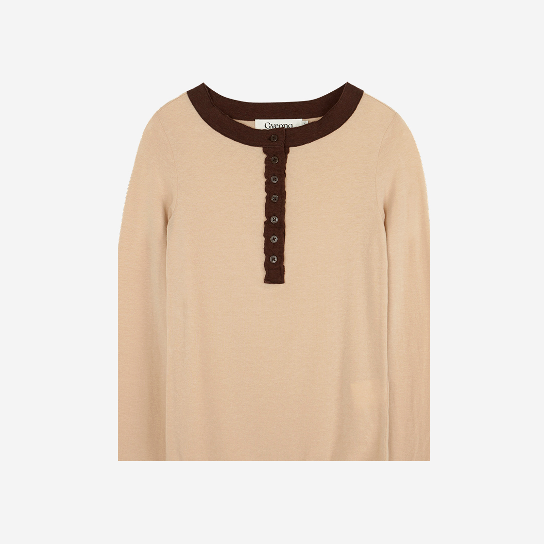 경 헨리 넥 롱 슬리브 티 베이지&브라운