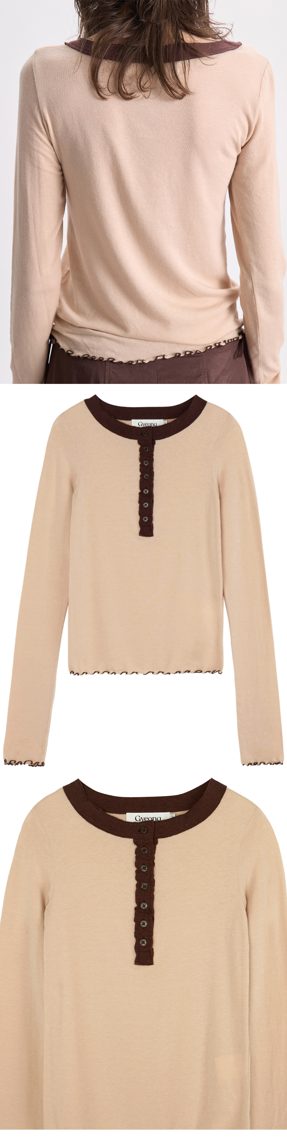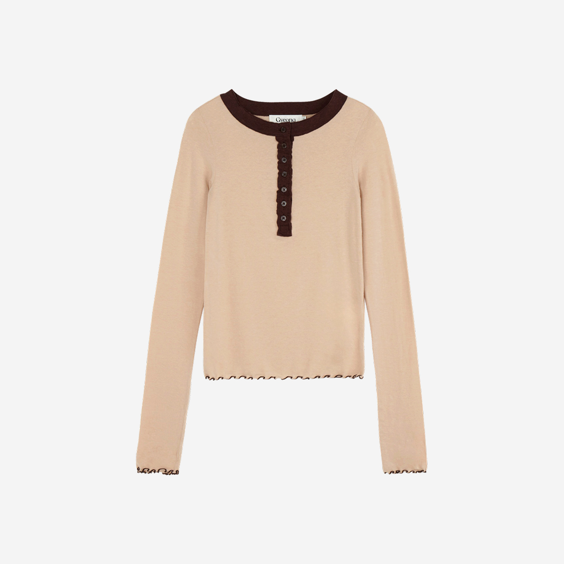 Gyeong Henley Neck Long Sleeve Tee Beige & Brown