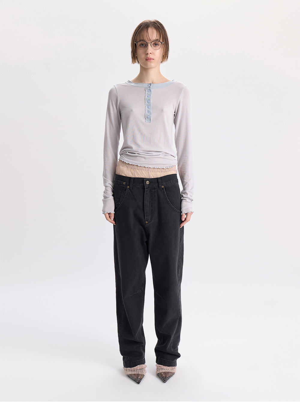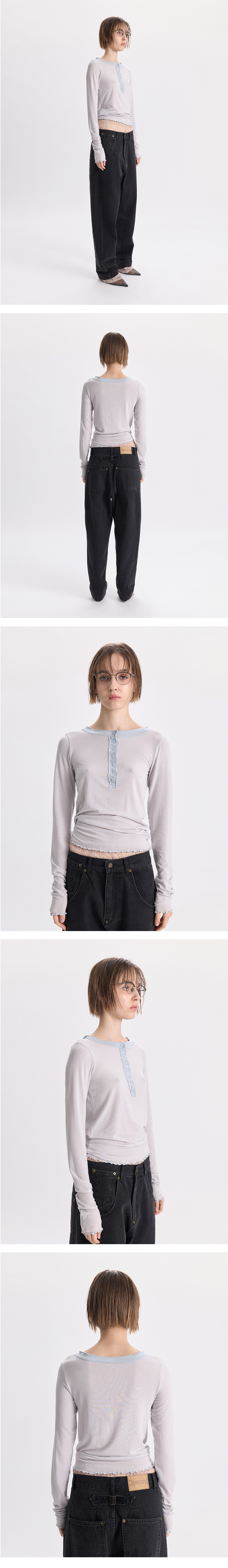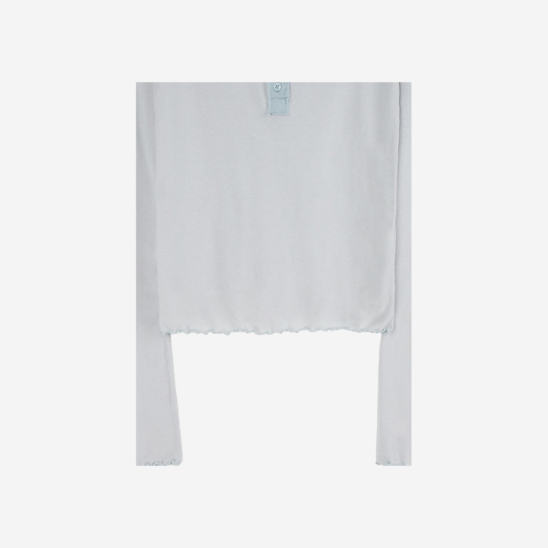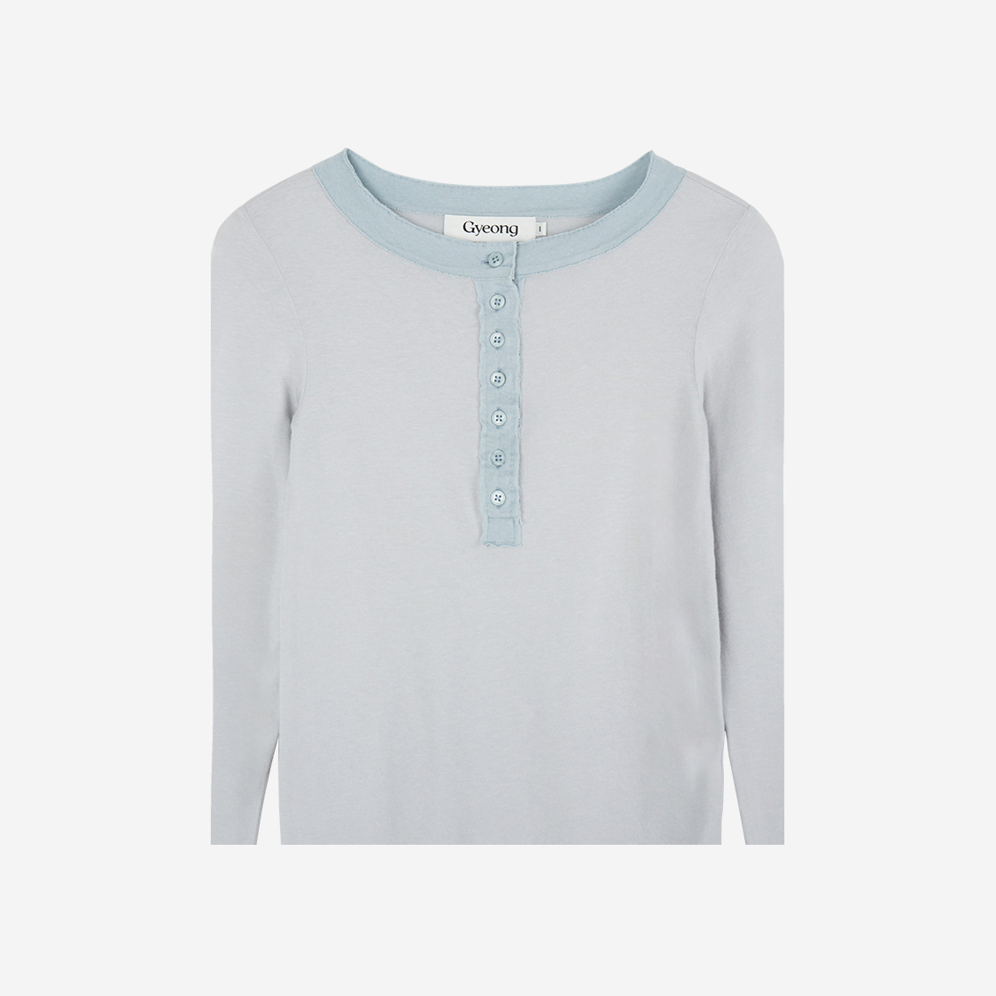 Gyeong Henley Neck Long Sleeve Tee Gray & Sky Blue