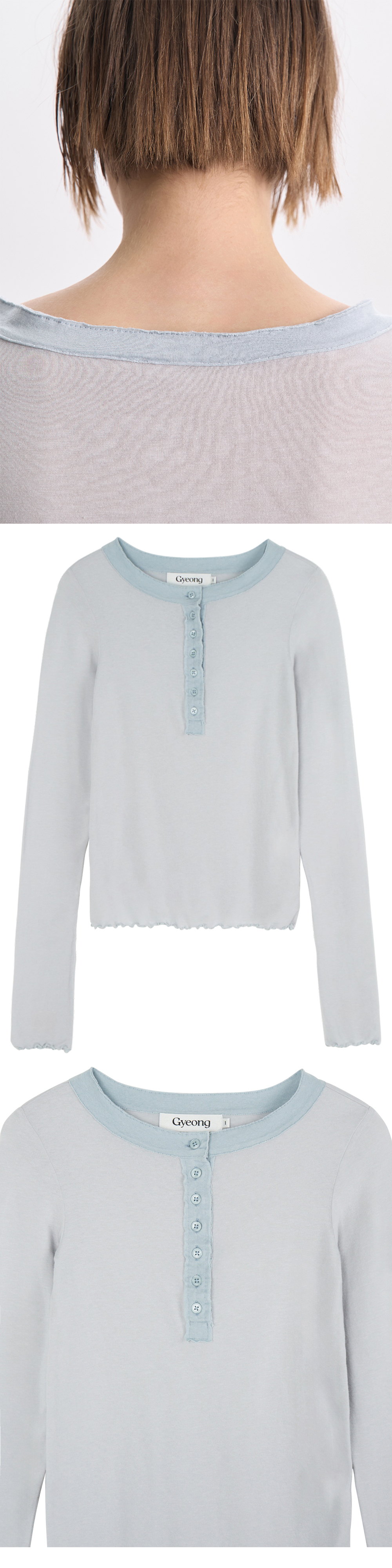 경 헨리 넥 롱 슬리브 티 그레이&스카이 블루