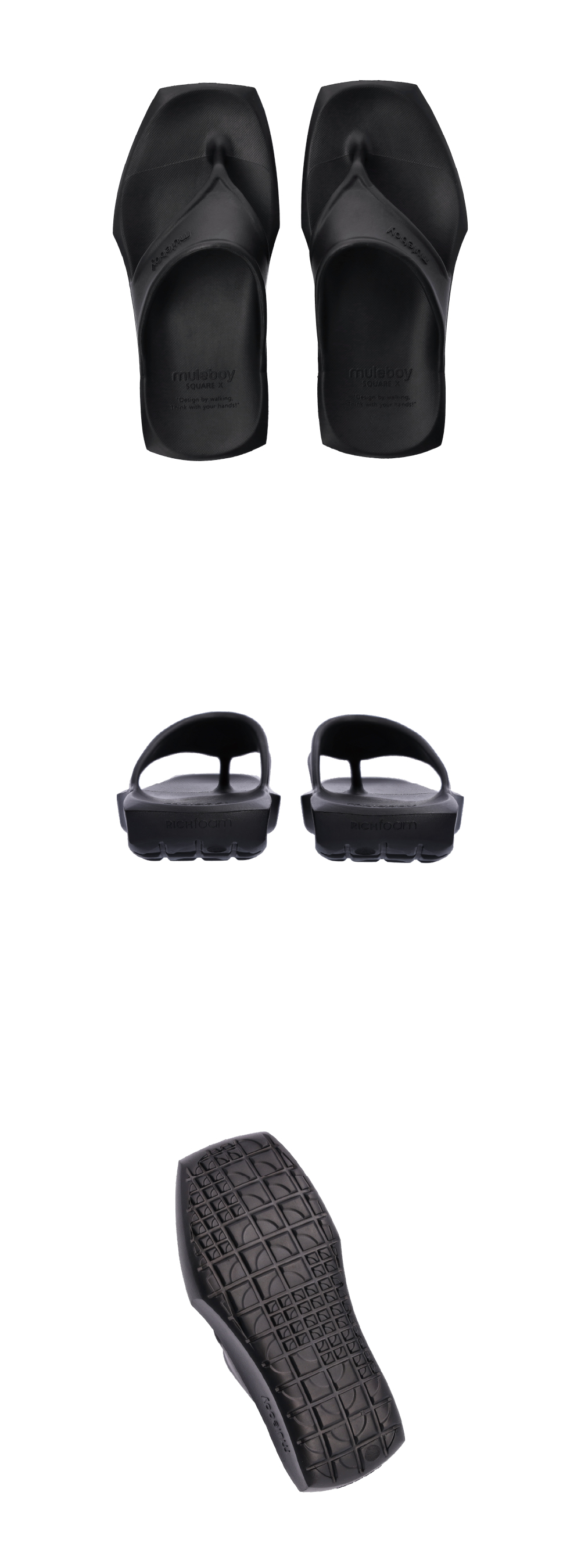 스퀘어 엑스는 발 끝 엣지가 두드러지는 플립플랍입니다. 각 엣지를 연결하는 선은 단순하고, 볼드한 스트랩 라인은 현대적인 느낌을 강조합니다. 발바닥의 아웃솔 패턴은 보행 패턴에 맞춰 미끄러짐과 충격흡수를 위해 설계되었습니다.