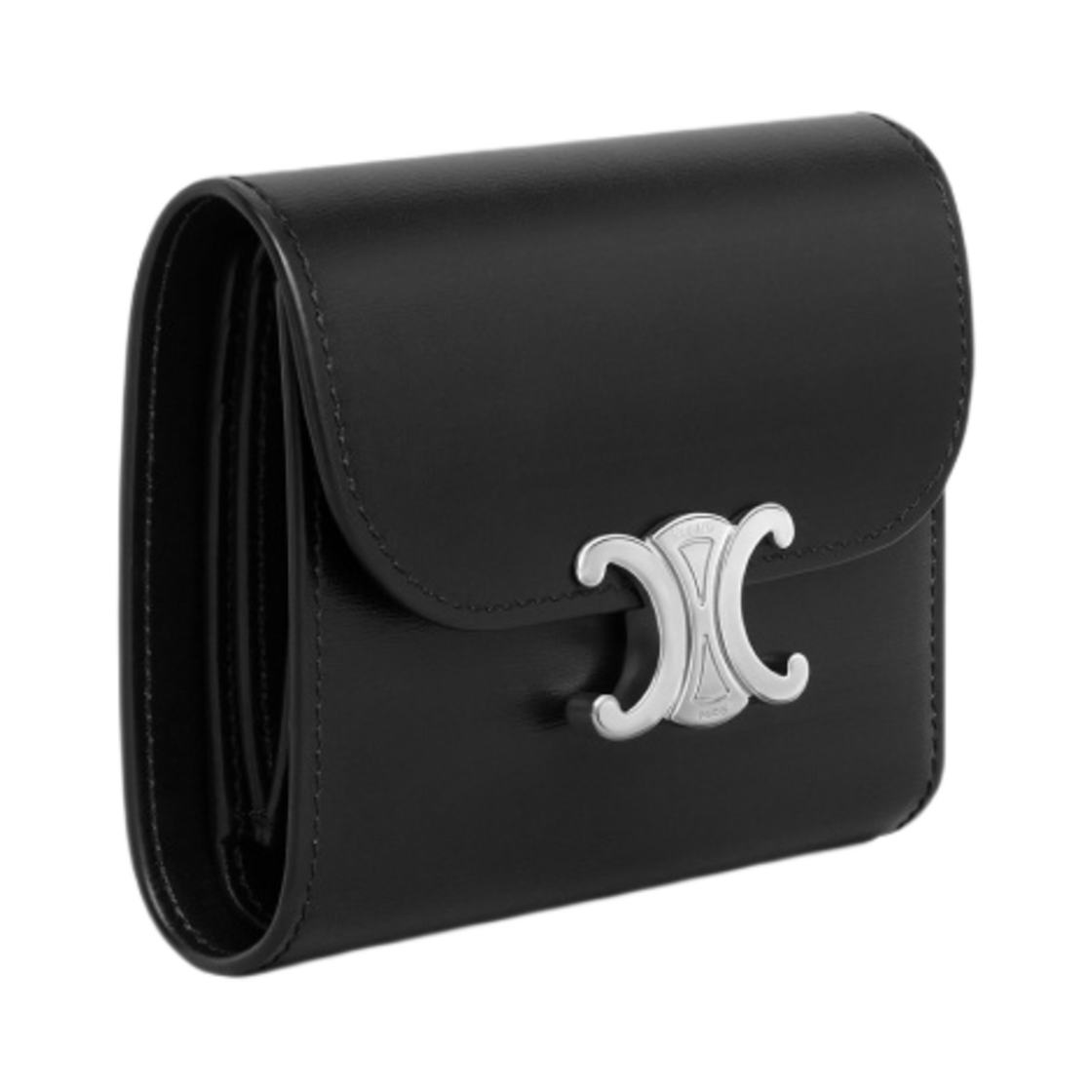 셀린느 샤이니 카프스킨 트리옹프 스몰 플랩 지갑 블랙