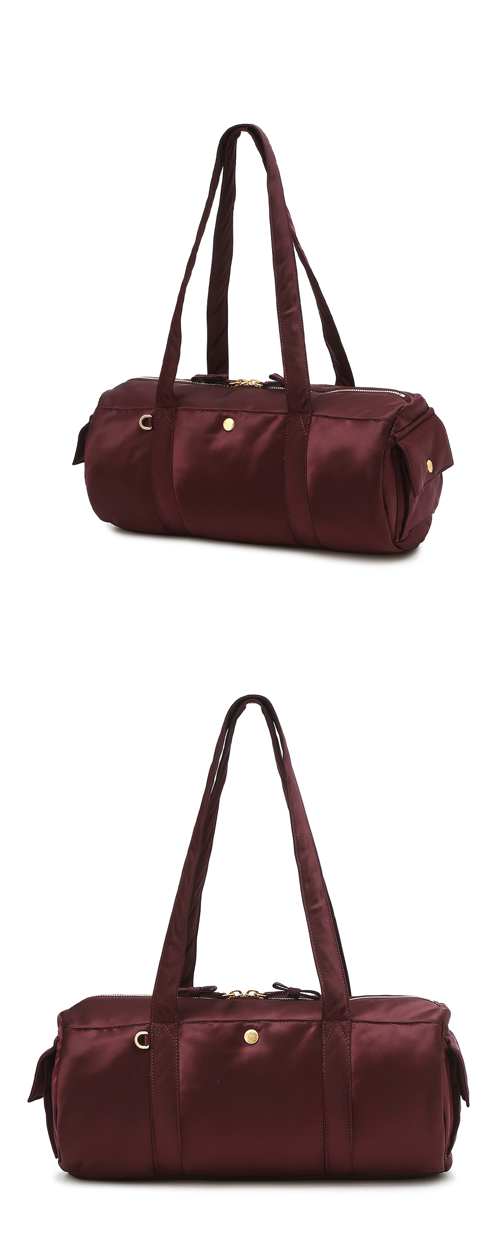 고급스러운 광택감이 매력적인 와인 컬러 새틴을 메인으로 제작한 JOUR 라인의 버건디 더플백입니다. 같은 LINE의 가방과 지갑의 탈부착이 가능하며, 높은 수납성으로 여행에 적합한 가방입니다. 로고 금사 라벨, 스냅 버튼의 심볼 로고 포인트 등의 디테일이 포인트가 됩니다. 실크처럼 고급스럽고 부드러운 터치감을 가진 새틴 조직의 원단을 사용하였습니다. 생활 방수 가능한 폴리에스터 원단으로 내구성과 사용성이 높습니다.