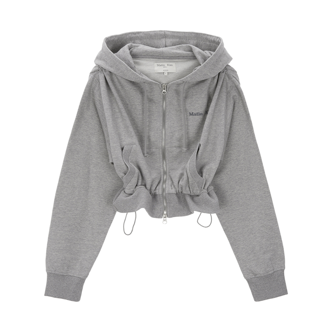 (W) Matin Kim String Detail Crop Hoody Zip Up Grey