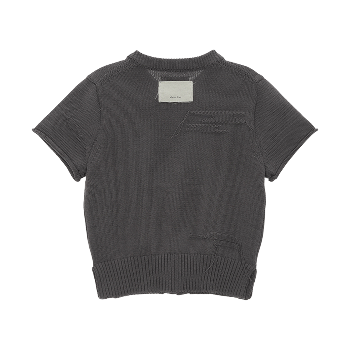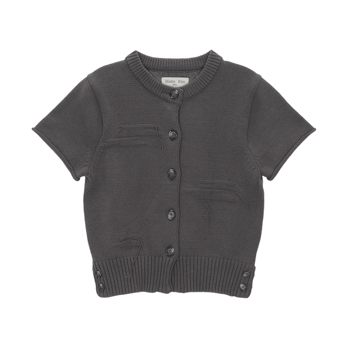(W) Matin Kim Damage Round Half Cardigan Charcoal