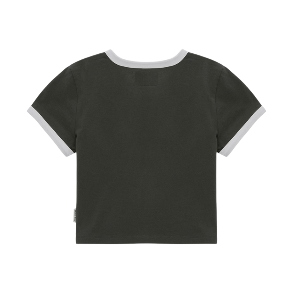 (W) Matin Kim Cutted Logo Ringer Crop Top Charcoal