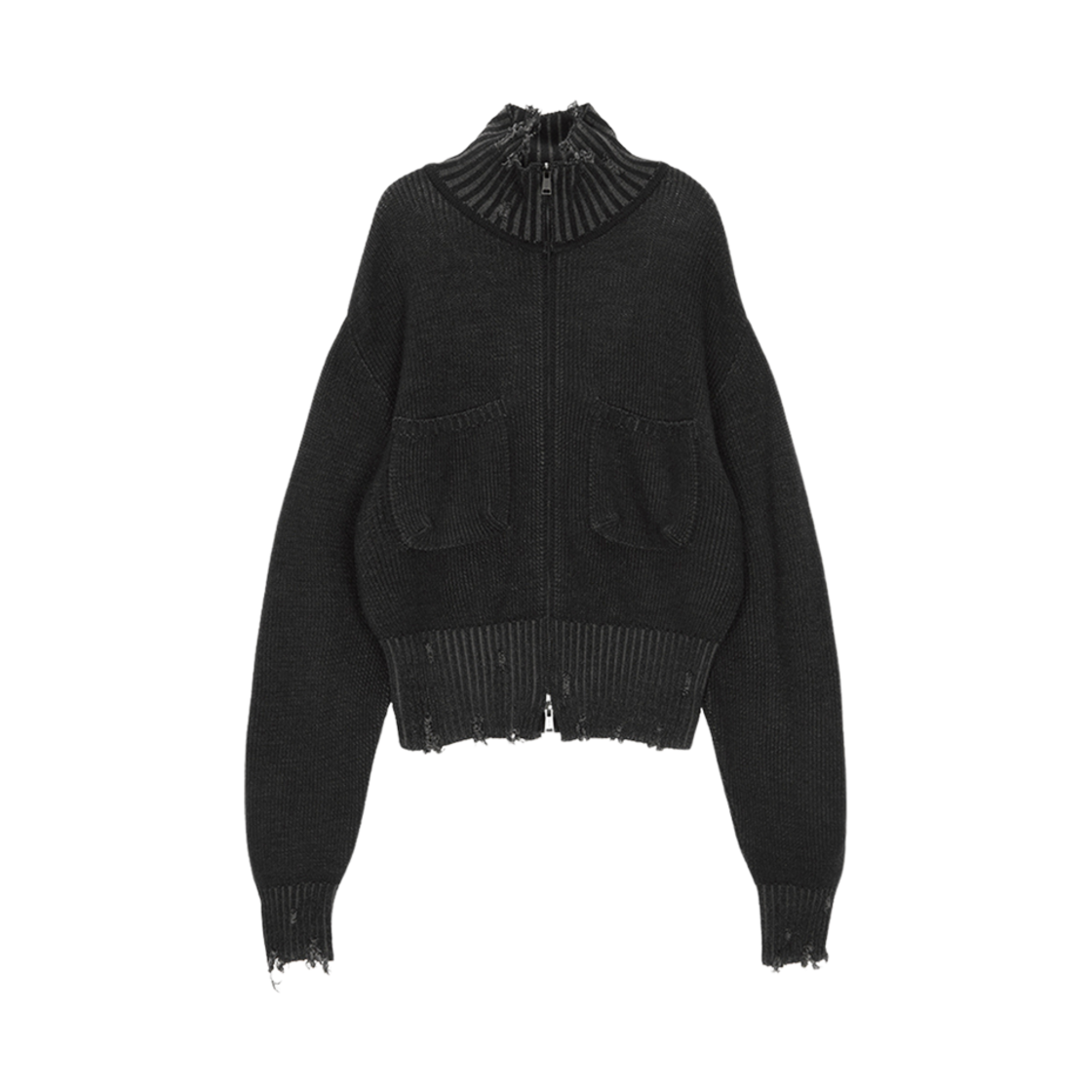 (W) Matin Kim Color Ribbed High Neck Zip Up Charcoal