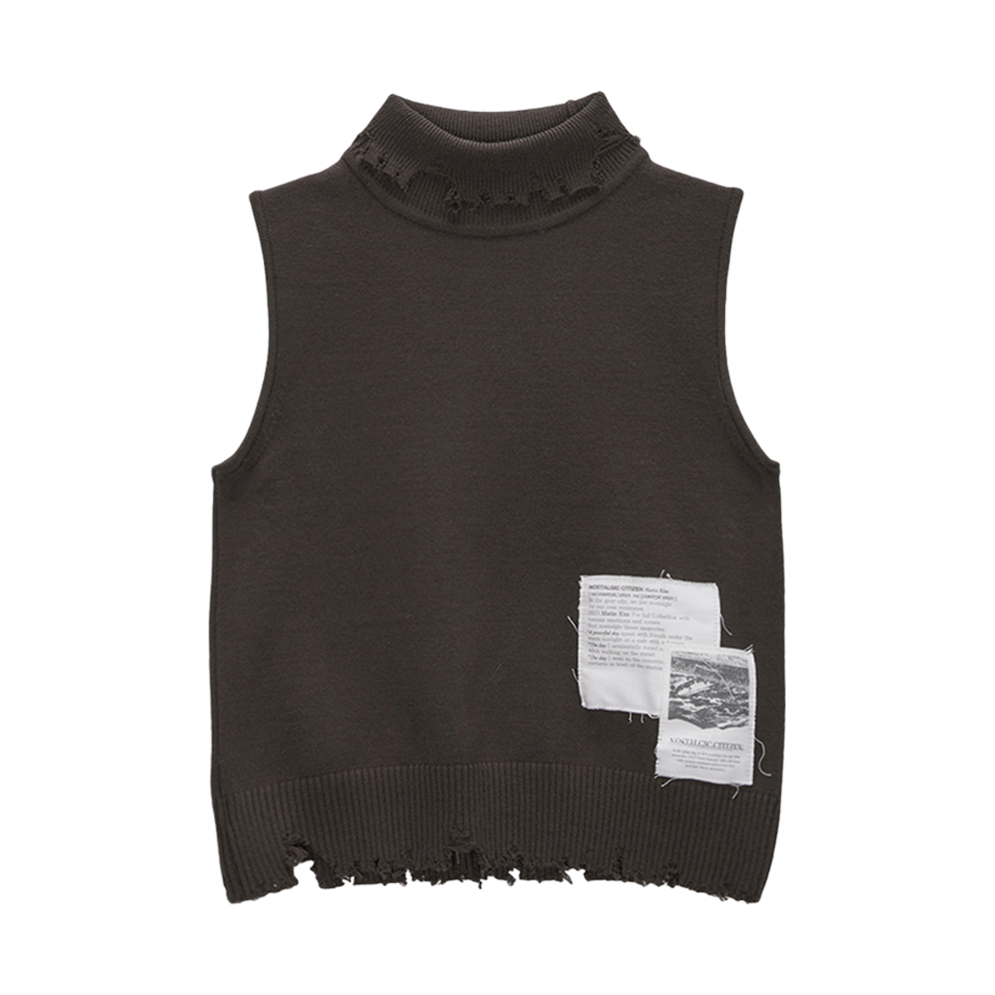 (W) Matin Kim Damage Sleeveless Turtle Neck Knit Top Brown