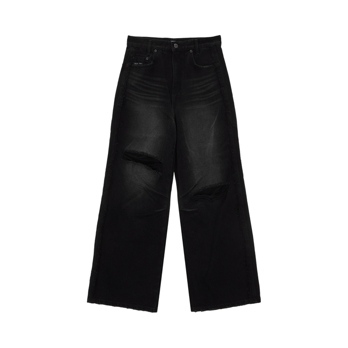 (W) 마뗑킴 빅 데미지 브러쉬 데님 팬츠 블랙