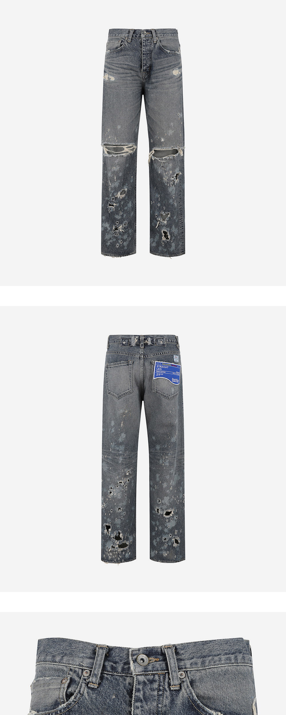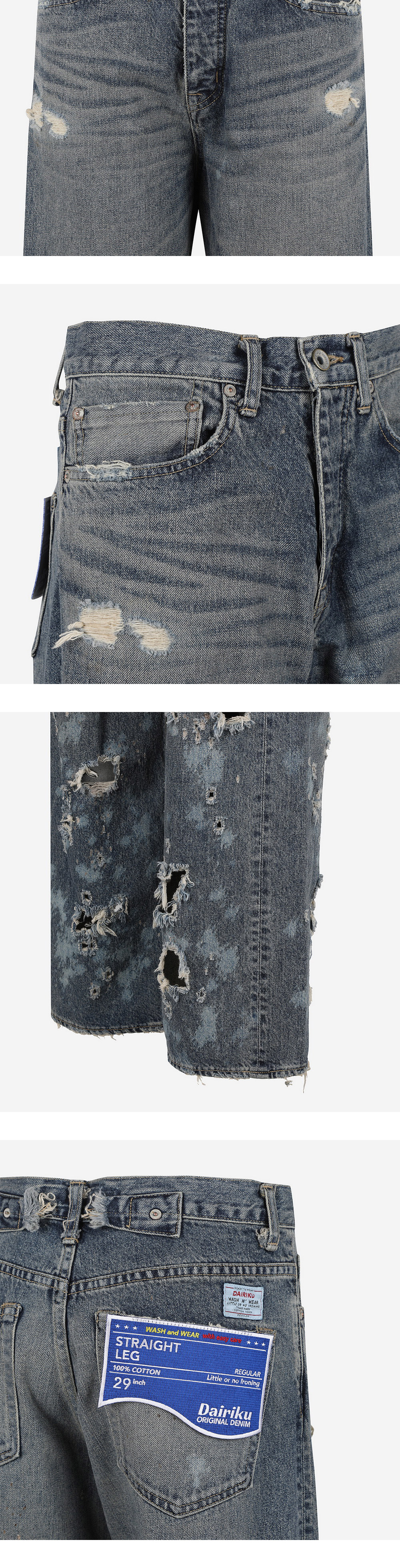 다이리쿠 데미지 스트레이트 데님 팬츠 인디고