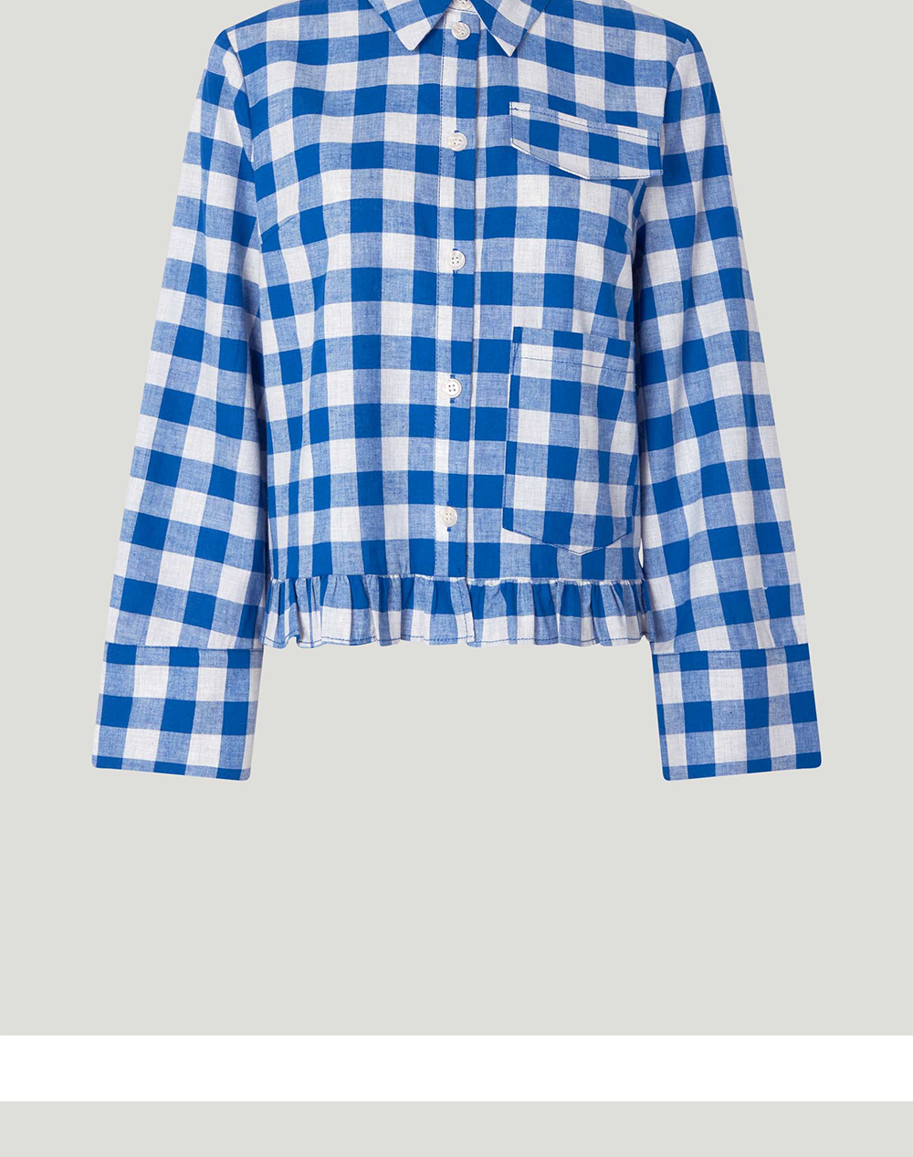 바움 운드 페르드가르텐의 밀루나 자켓은 러플, 소매 부분의 단추, 그리고 박시한 컷이 특징입니다. - 루즈 핏 - 면과 리넨 혼방 소재 사용 - 셔츠 전면에 패치 포켓과 페이크 플랩