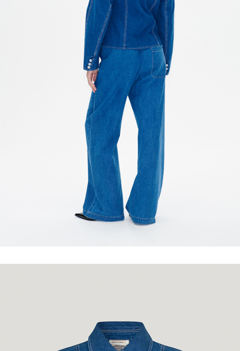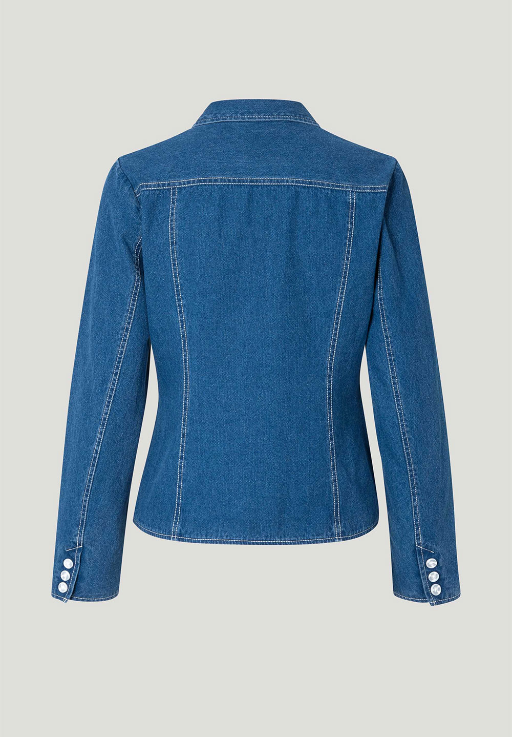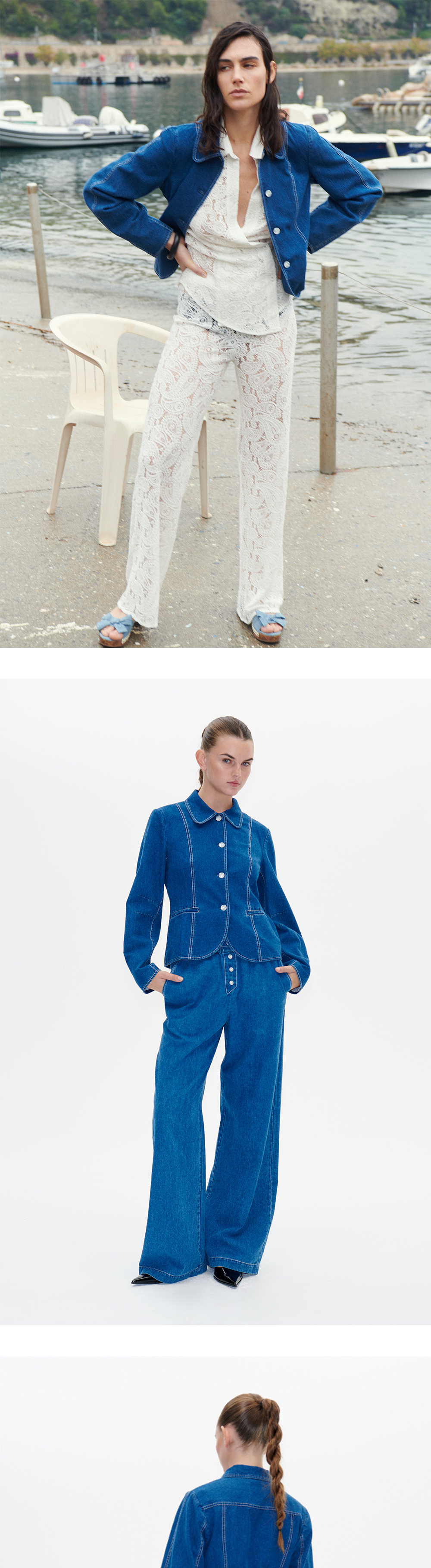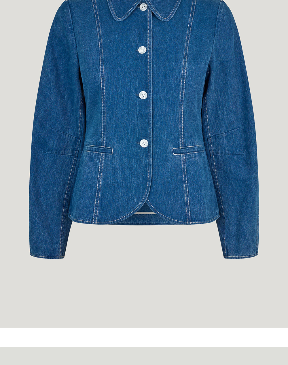 바움 운드 페르드가르텐의 베리타 데님 자켓은 버튼으로 닫히는 스타일로, 짧은 칼라와 둥근 밑단이 특징입니다. - 핏한 사이즈 - 전면에 두 개의 포켓 - 오가닉 코튼 소재 - Pre-Autumn 2024 컬렉션 피스