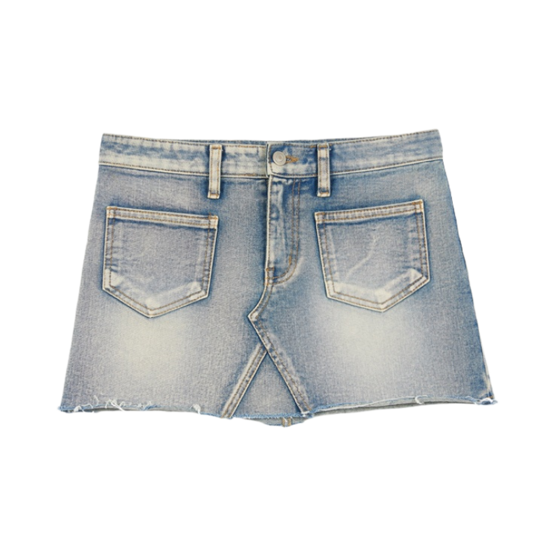 (W) 다이닛 포켓 빈티지 데님 미니 스커트 라이트 블루