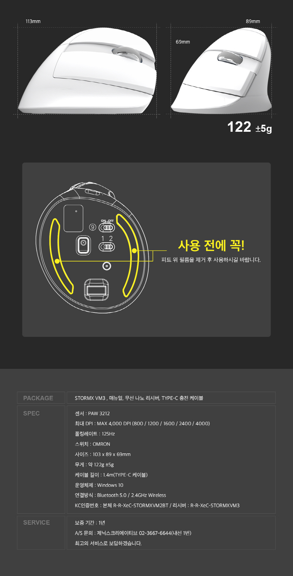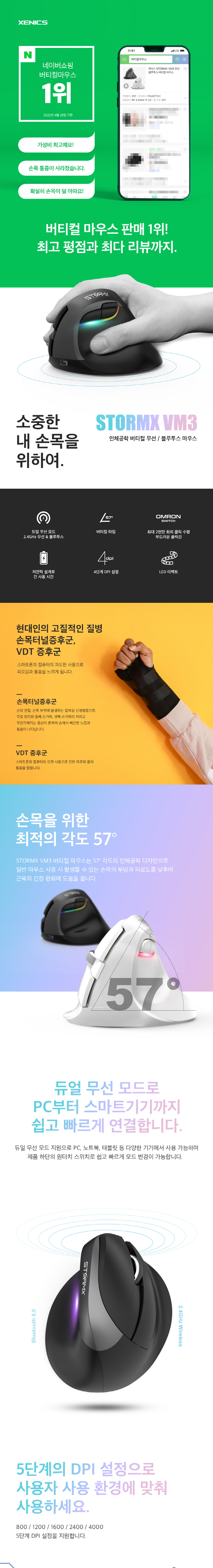 제닉스 STORMX VM3 무선 블루투스 버티컬 마우스