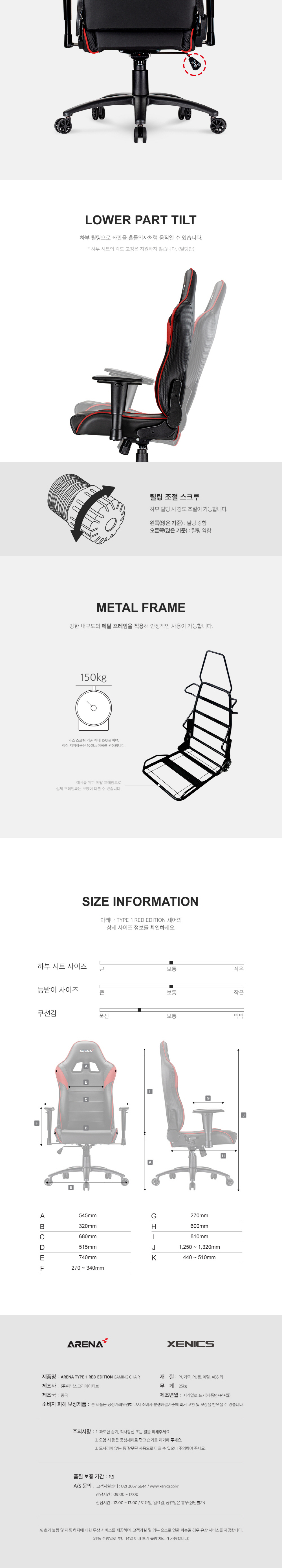제닉스아레나 타입-1 게이밍 체어 레드