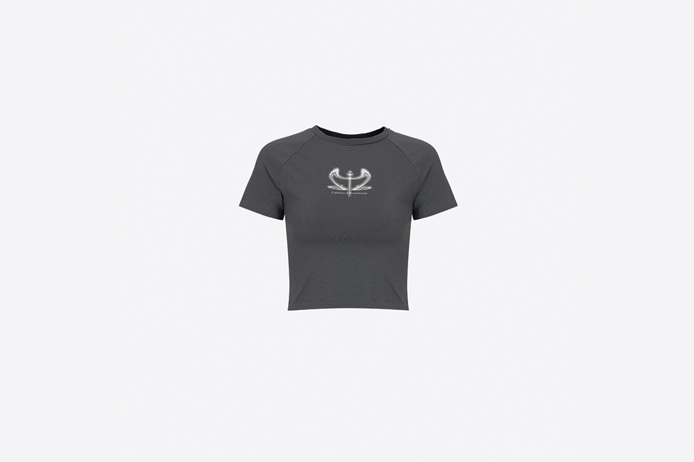 골지 니트 크루넥 전면에 그래픽, 텍스트 프린트 레글런 소매 크롭핏 Shell : Contton 92%, Span 8% Made in Korea