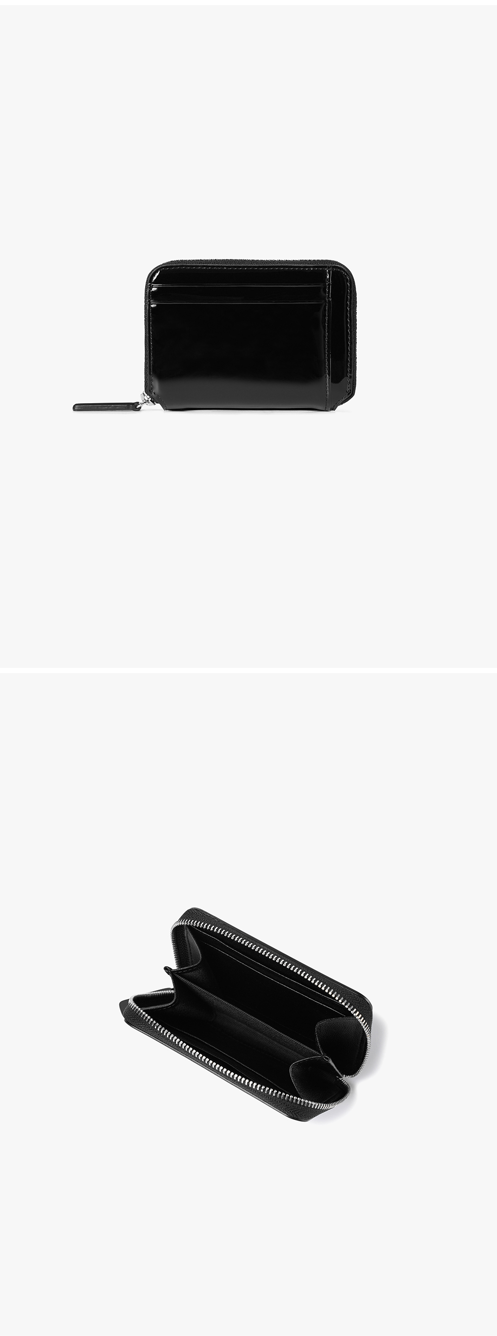 - 글로시한 에나멜 코팅 가죽 소재의 지갑 - 후면 3개의 카드 슬롯과 지퍼 클로징으로 코인,지폐,카드 등 수납이 가능 - YKK 지퍼를 사용하여 높은 내구성