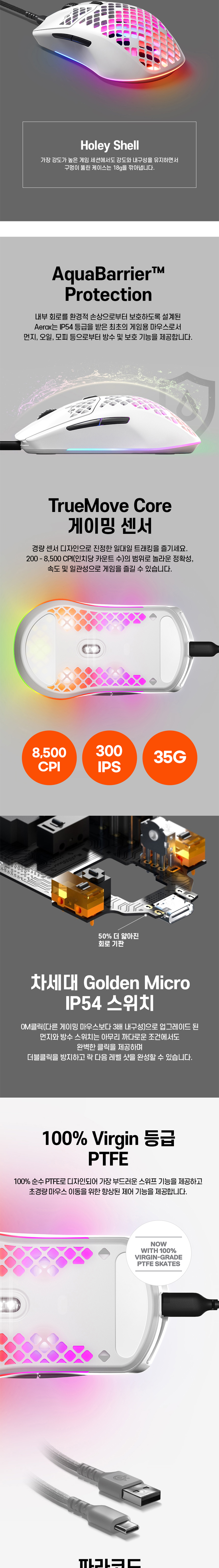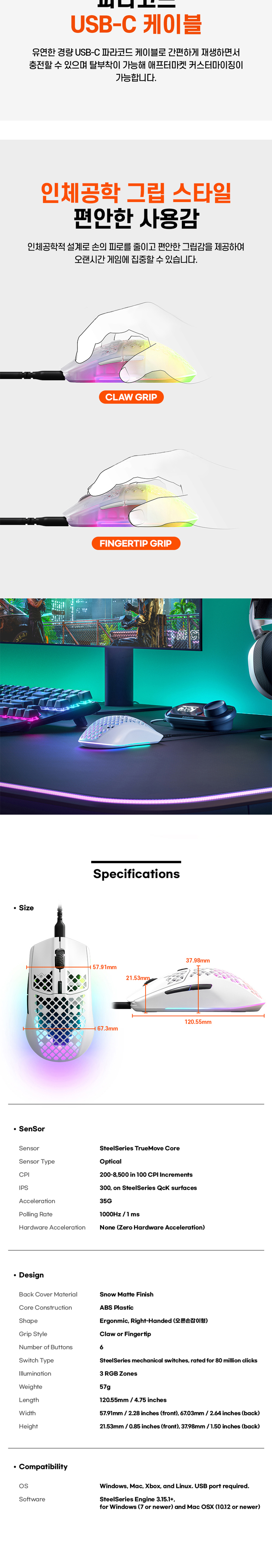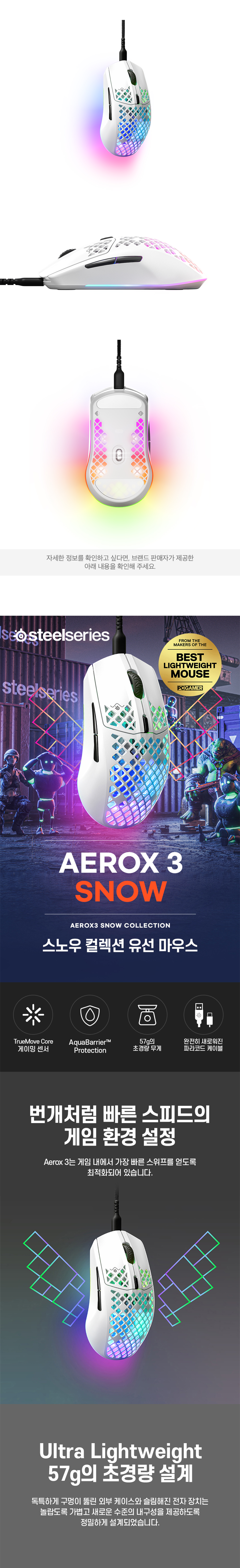 스틸시리즈 에어록스 3 2022 유선 게이밍 마우스 스노우