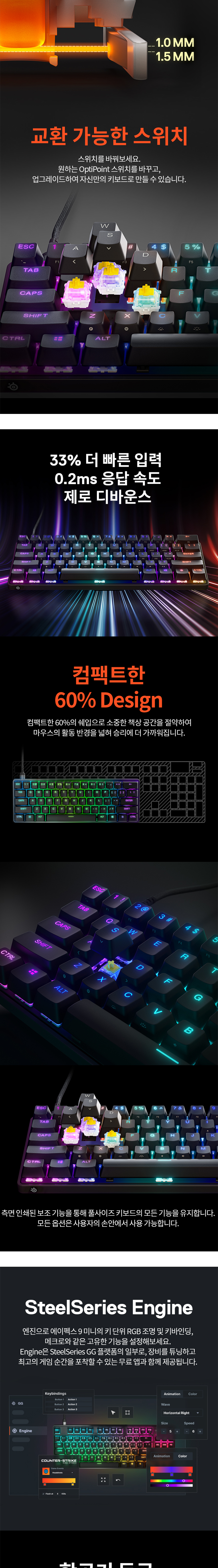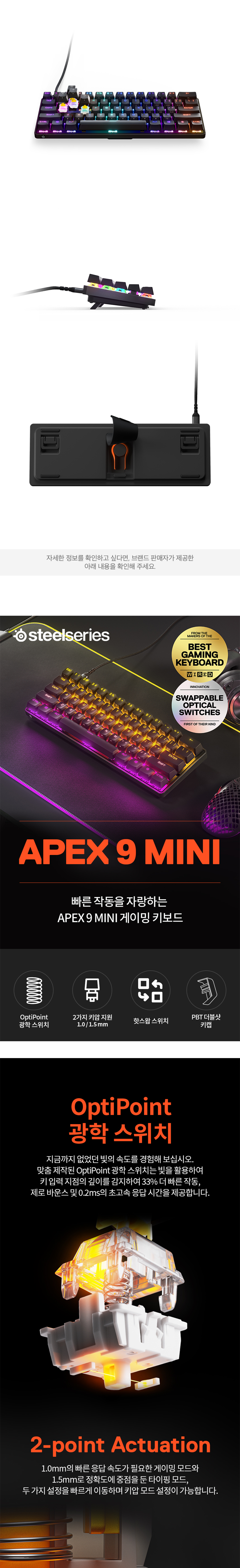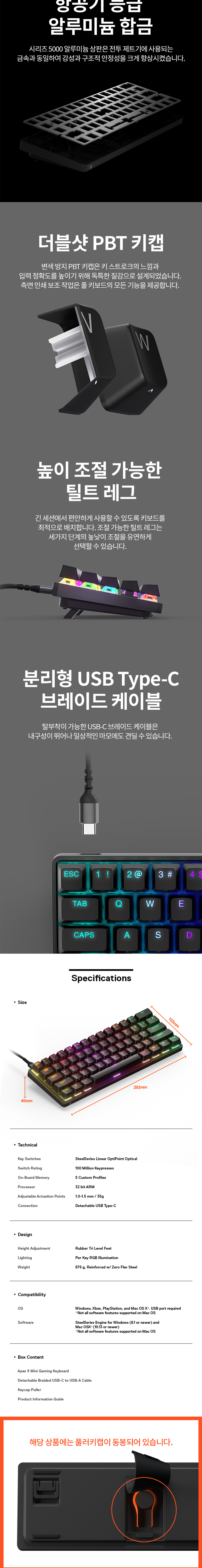 스틸시리즈 에이펙스 9 미니 US 광축 게이밍 기계식 키보드