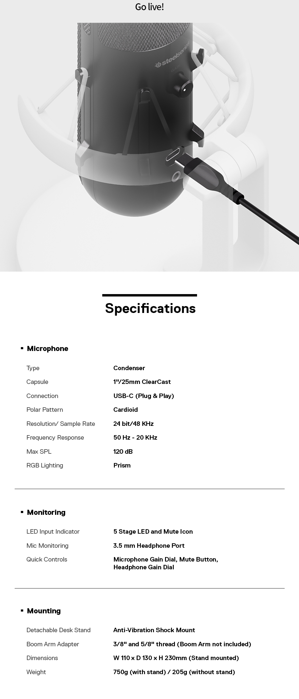 Steelseries Alias Condenser USB Gaming Microphone