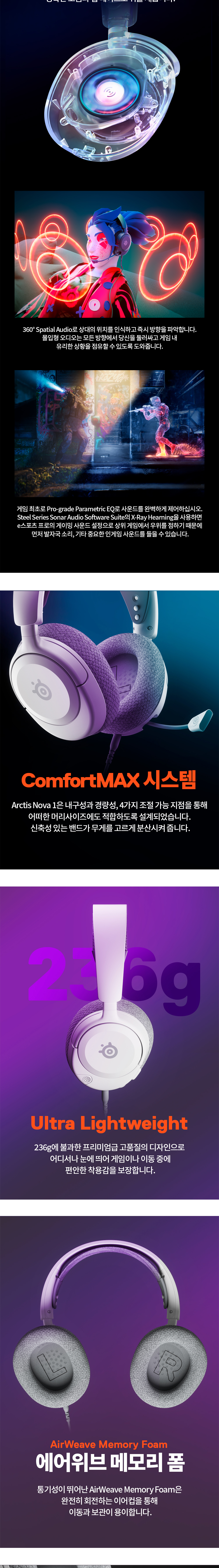 스틸시리즈 아크티스 노바 1 유선 게이밍 헤드셋 화이트