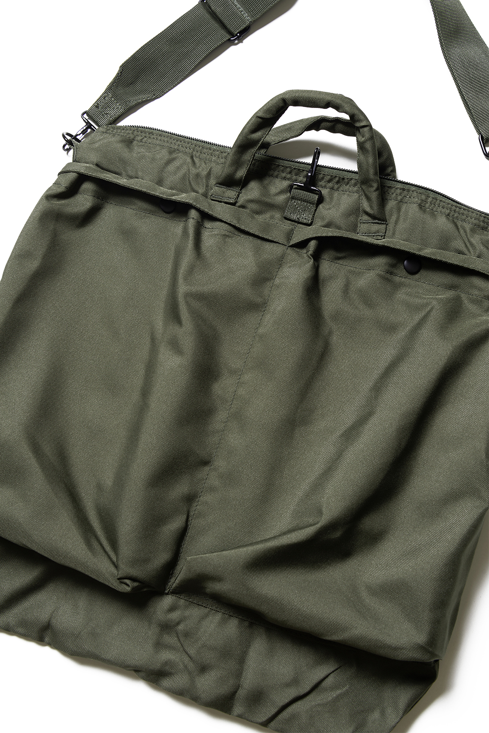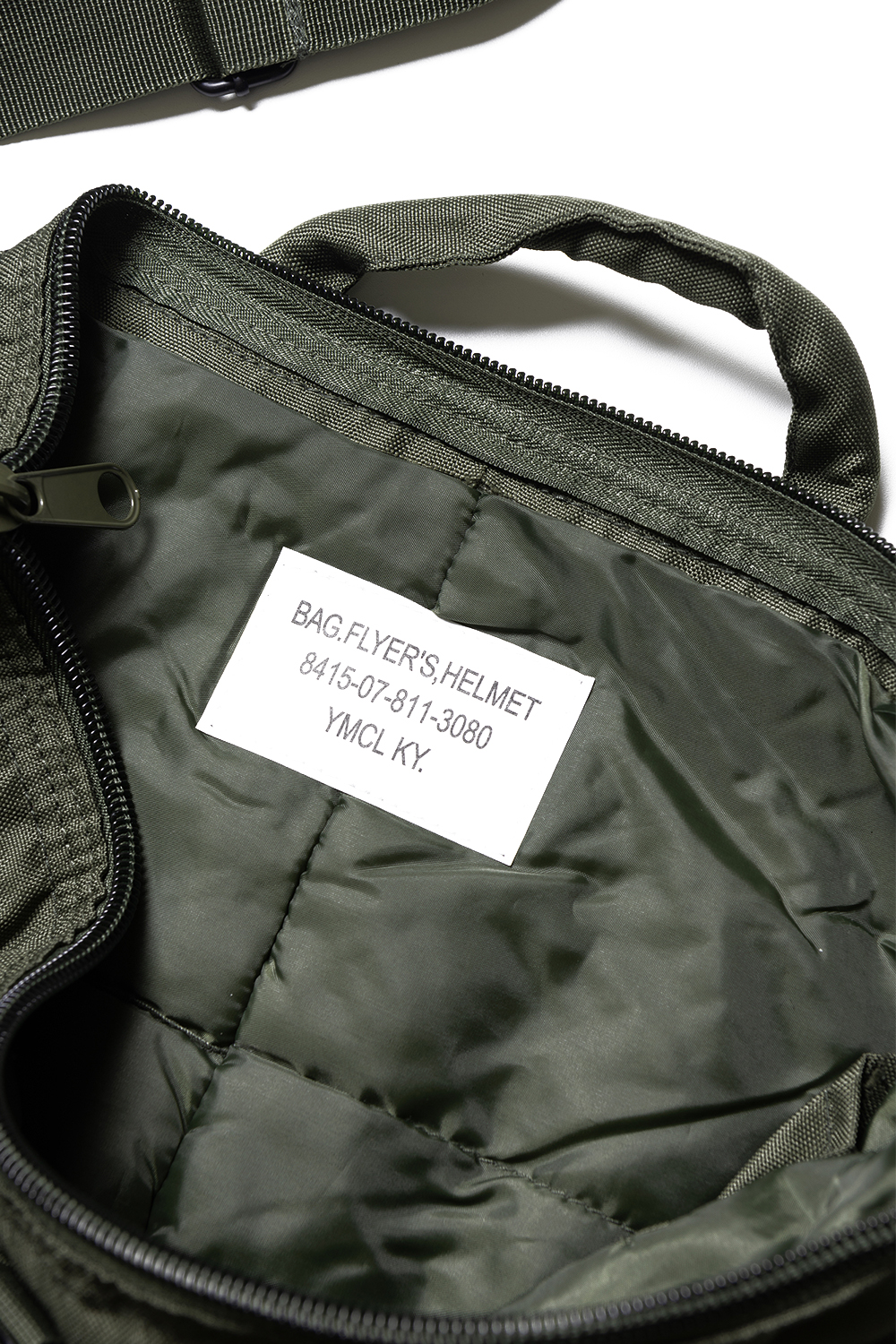 YMCL KY Helmet Bag - Olive 미공군 핼맷백입니다. 프론트의 2개의 버튼 타입 포켓과 내부 양측의 2개의 포켓이 있어 수납에 용이합니다.