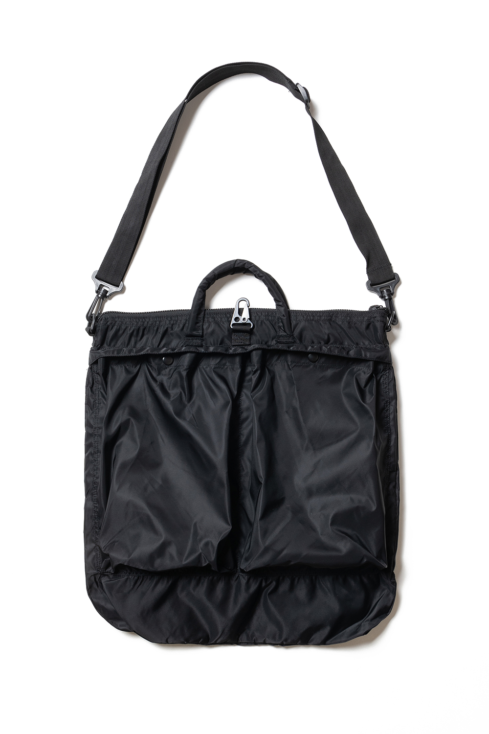 YMCL KY US AIR FORCE Helmet Bag - Black 'USAF 핼맷백' 입니다. 기존의 핼맷백 보다, 탄탄한 조직감과 부드러운 소재감이 특징입니다. 명칭 그래도, 핼맷을 수납하기 위한 것으로 수납능력이 매우 뛰어납니다. 또한 프론트 부분의 버튼타입의 2개의 포켓이 장착되어 있으며, 내부 및 후면부 에는 지퍼 타입의 포켓이 있습니다. 스트랩을 사용하여 숄더백으로도 가능한 2way 사양 입니다. 내부에는 쿠션이 들어가 있어서, 내용물이 쉽게 손상되지 않습니다. 초기형 핼맷백에서 자주 보여지는, 'MA-1'과 'L2B'에 사용되는 나일론 원단으로 제작했으며, 형태는 가장 편리한 3rd 모델을 채용하였습니다.