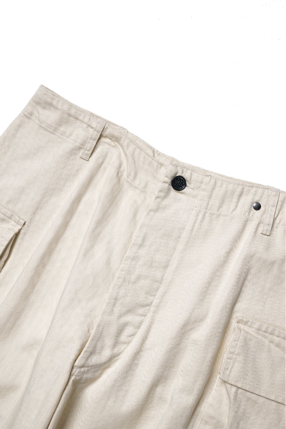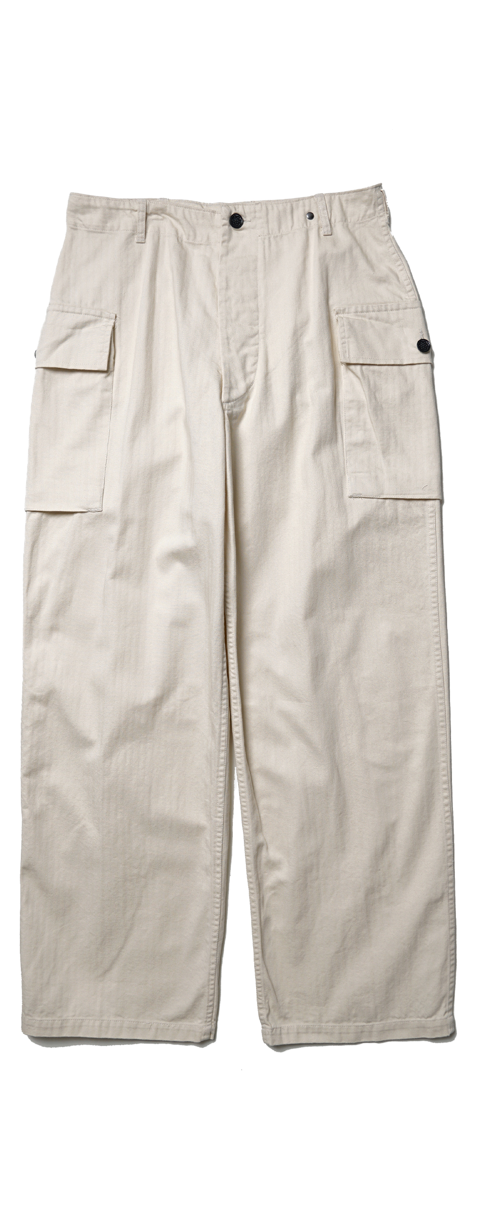 YMCL KY US M-43 HBT Cargo Pants - Natural 양 사이즈의 큰 카고 포켓이 특징인, M-43 팬츠를 현대에 맞게 재현한 아이템입니다. 프론트는 버튼 플라이 타입으로 버튼은 13스타 버튼을 사용하여 제조하였습니다. 여유로운 실루엣이며, 헤링본 소재 특유의 경년 변화를 즐기실 수 있습니다.