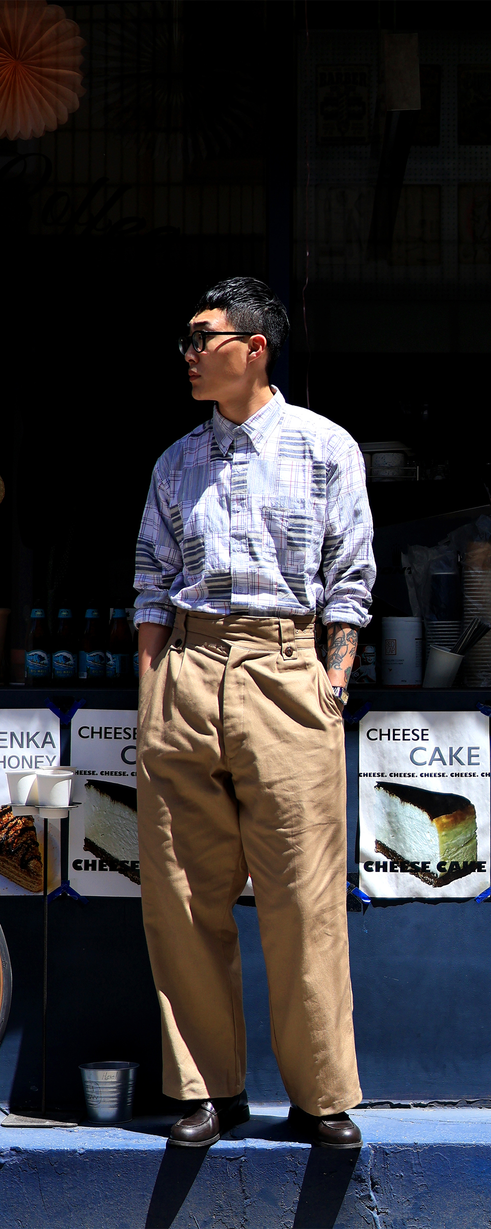 YMCL KY Australian 1960s Gurkha Pants - Khaki 1950년대 영연방인 호주군은 영국군과 함께 남아시아에서 군사 활동을 하고 있었습니다. 호주군에게는 당시 영국군의 P50 정글 팬츠가 지급되었습니다. P50 정글팬츠는 구르카 팬츠의 특징을 지니고 있습니다. 1960년대 호주군은 P50 정글팬츠를 바탕으로, 권총 벨트를 고정할수 있는 대형 벡트 루프를 추가한 열대지역의 구르카 팬츠를 채택했습니다. 작업복과 전투복 2가지 형태로 사용되었으며, 1980년대까지 주로 육군에 지급되었습니다. 본 제품은 탄탄한 소재부터 넓은 전신 실루엣을 충실하게 재연한 제품입니다. 4포켓 타입으로 지퍼는 버튼 타입이며, 허리의 사이즈 조절 스트랩은 벨트 타입입니다. 허리폭은 상대적으로 좁고 밑위와 허벅지가 넉넉한 실루엣입니다. 착용시 '2'가 ' 29-31' 정도이며, '3'이 '32-33', '4'가 '34-35' 사이즈 정도 입니다.