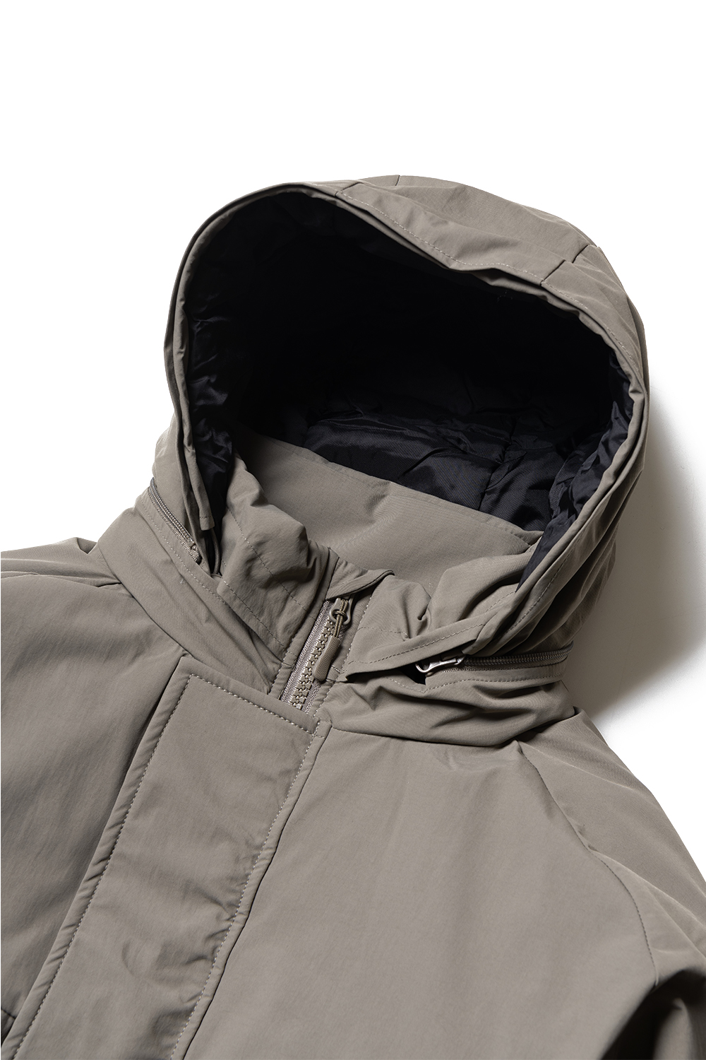 YMCL KY US LEVEL7 Type2 Monster Parka - Foliage 본 제품은 오리지널 제품을 바탕으로 새롭게 복각 하였습니다. 내부의 충전재는 미국 'Dupont社'의 고성능 폴리에스테르인 'Sorona®'을 사용하고 있습니다. Sorona 폴리에스테르는 친환경 소재로써 깃털 같은 경량감과 다운을 능가하는 보온성이 특징입니다. 또한 보습에 매우 효과적이며, 압축 및 복구 능력 역시 탁월하여, 지속성이 높은 소재입니다. 본래 백팩위에도 착용 가능한 아이템으로, 백팩과 착용시 옷감이 위로 올라옴을 고려하여 후면의 기장이 길며, 전체적으로 큰 사이즈감이 특징입니다. 더블 프론트 사양으로 벨크로 버튼 아래로, 2way 타입의 히든 지퍼가 있습니다. 프론트 양측의 지퍼는 히든 타입으로 위에서 아래로 개폐 가능합니다. 스탠드 카라 후면부의 지퍼를 오픈하면 후드가 개방됩니다. 착용시 'M'이 '103', 'L'이 '108' 정도입니다.