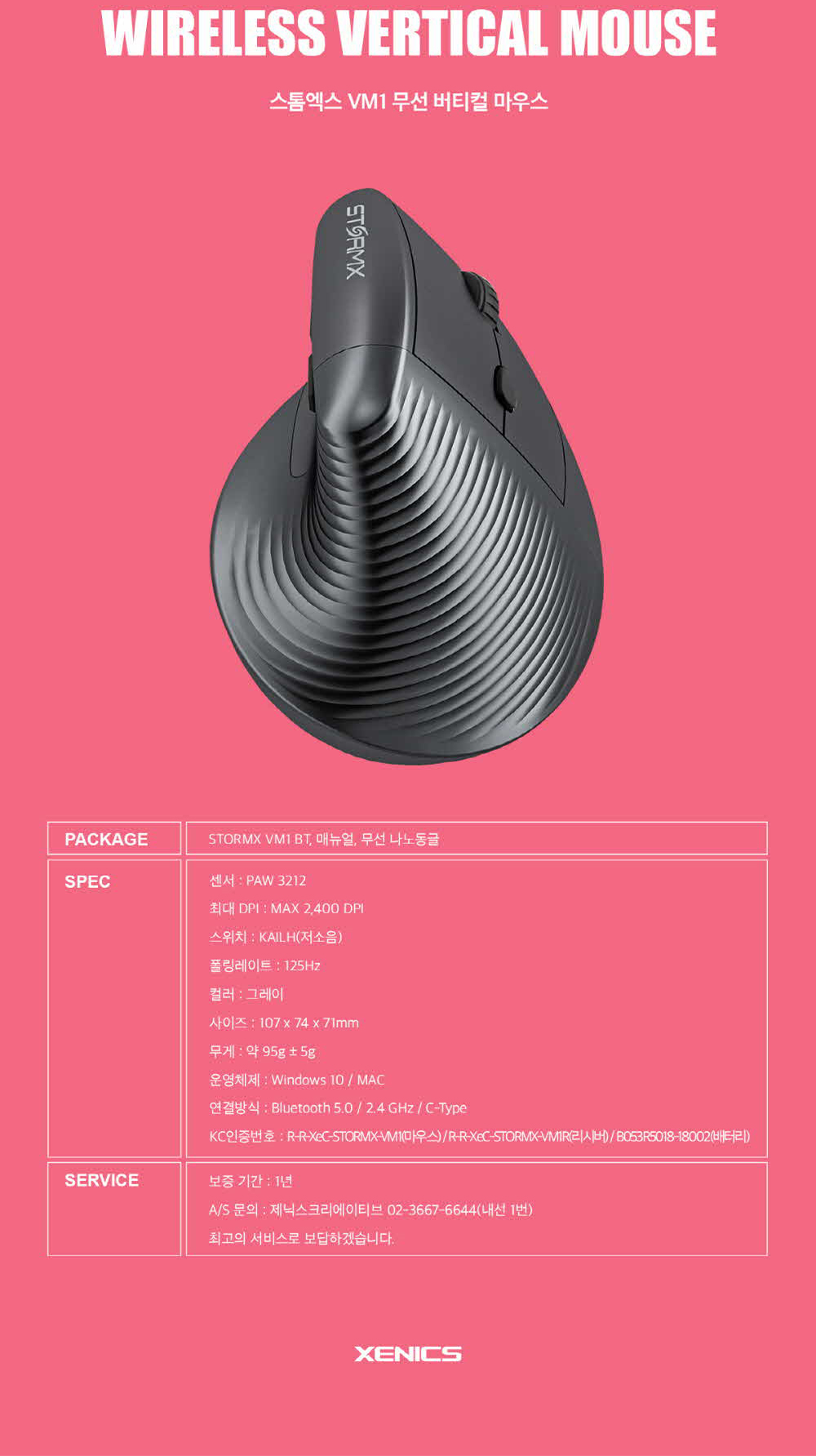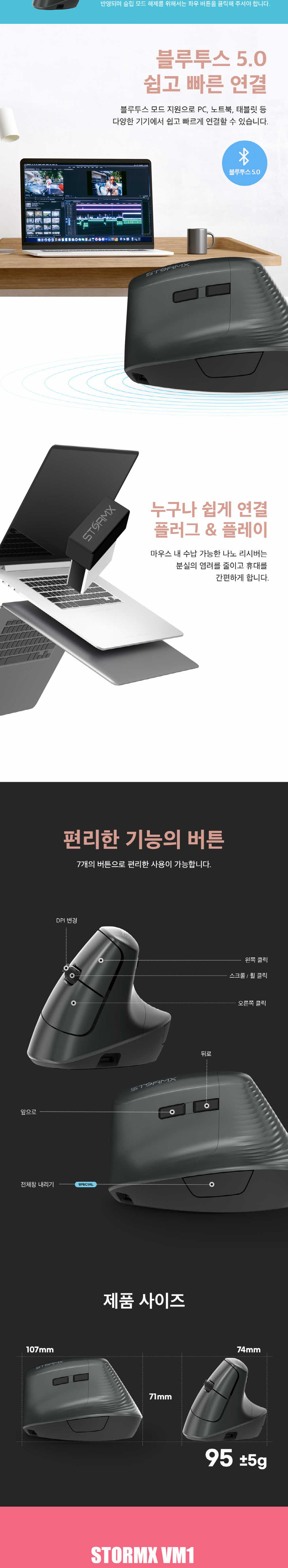 제닉스 STORMX VM1BT 무선 블루투스 버티컬 마우스