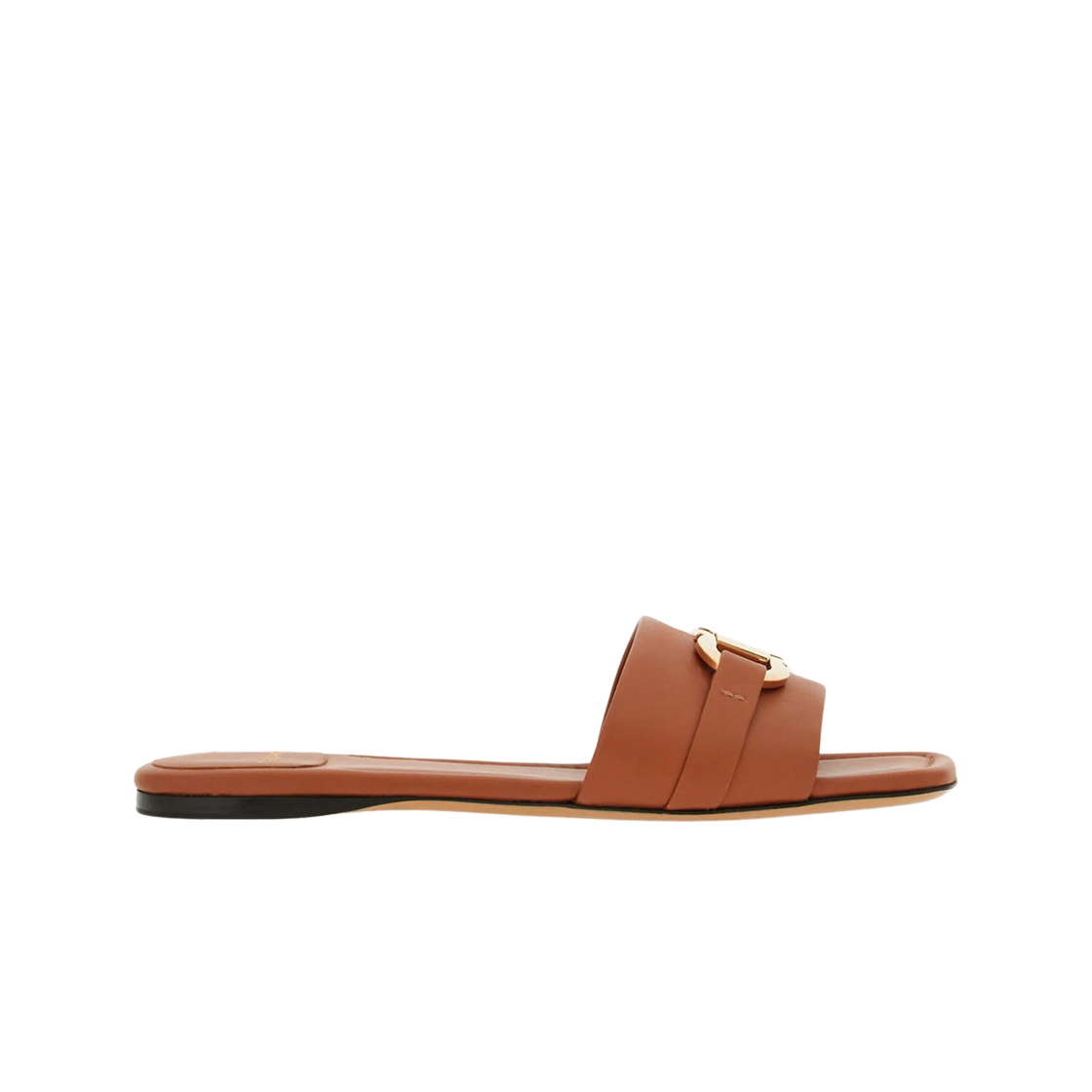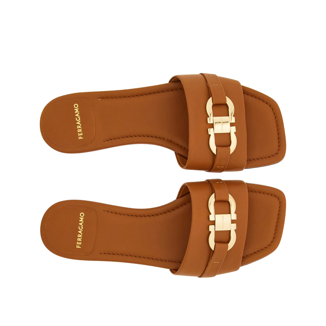 (W) Ferragamo Flat Slide with Gancini Ornament Tan
