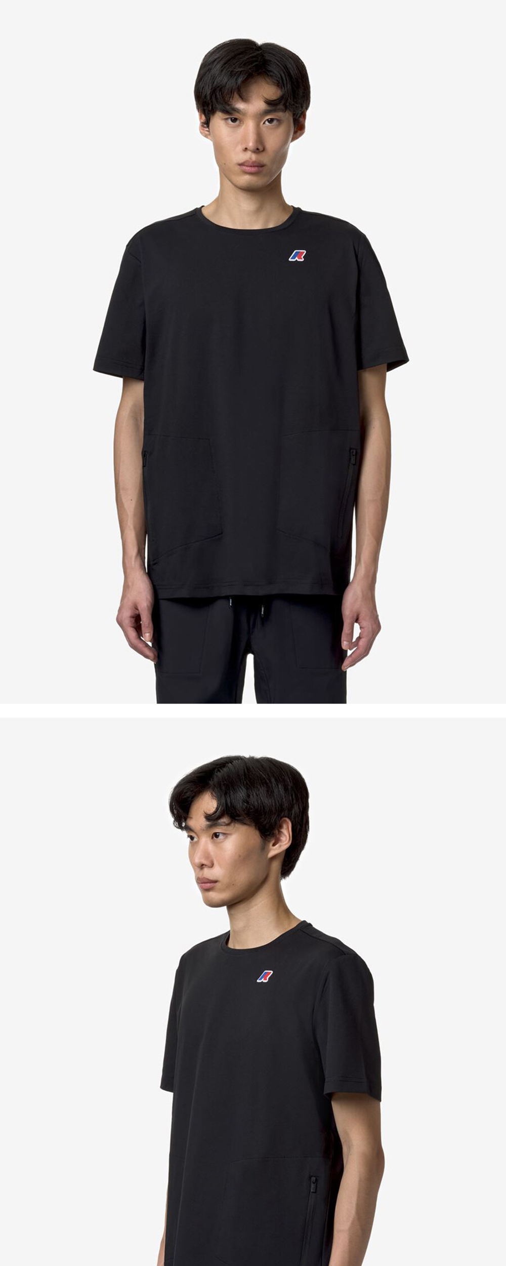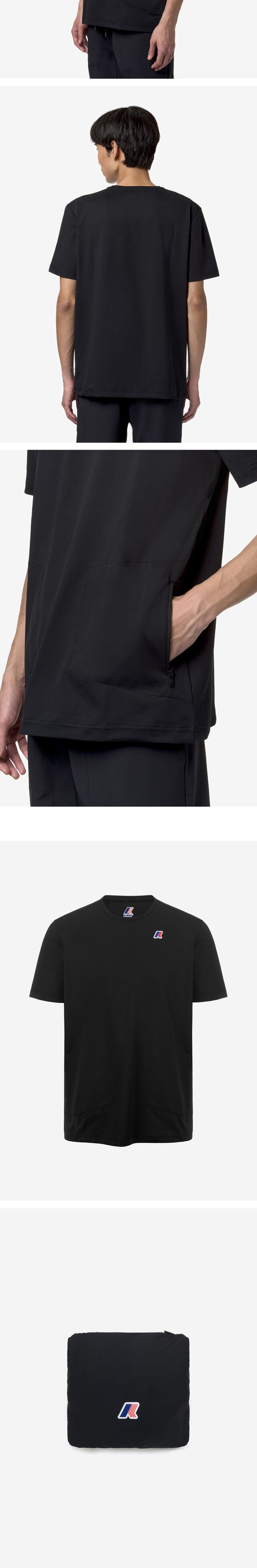 여행 가방에 간편하게 넣고 다니기 좋은 트래블 컨셉의 티셔츠 구김이 적은 폴리에스터 소재 양쪽에 지퍼 포켓으로 넉넉한 수납 공간 패커블 기능으로 휴대 용이 레귤러핏